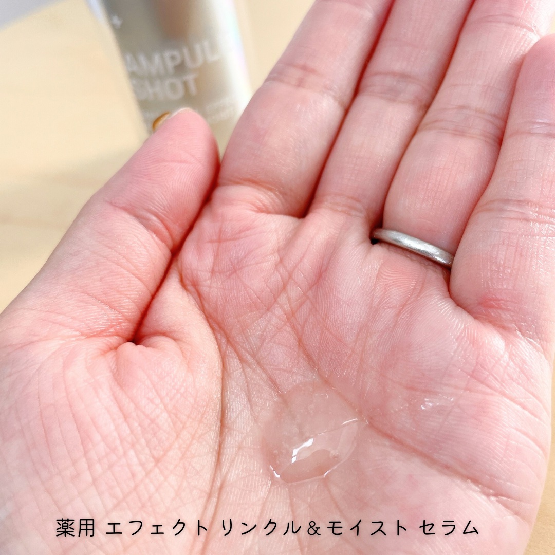 アンプルショット 薬用エフェクト リンクル&モイストローションアンプルショット 薬用エフェクト リンクル&モイストセラム【ローション】→みずみずしいテクスチャーで、肌なじみが良く、肌に浸透してしっとり感。ヒアルロン酸をはじめとする保湿成分配合...