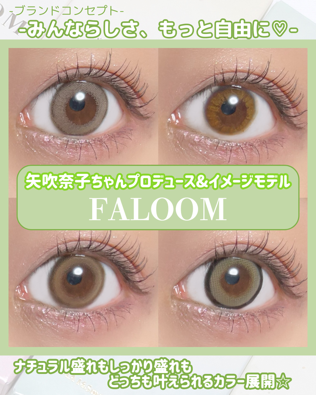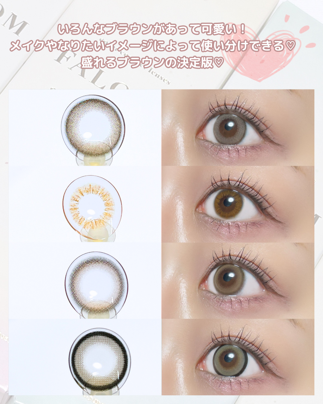矢吹奈子ちゃんプロデュース&イメモの新作カラコンを全色比較レビュー! ニュアンスブラウンカラー瞳を自然にトーンアップしてくれる裸眼アップデート系レンズ トレンドの白っぽブラウン×ふわっとフチデザインで、大人っぽい瞳を演出