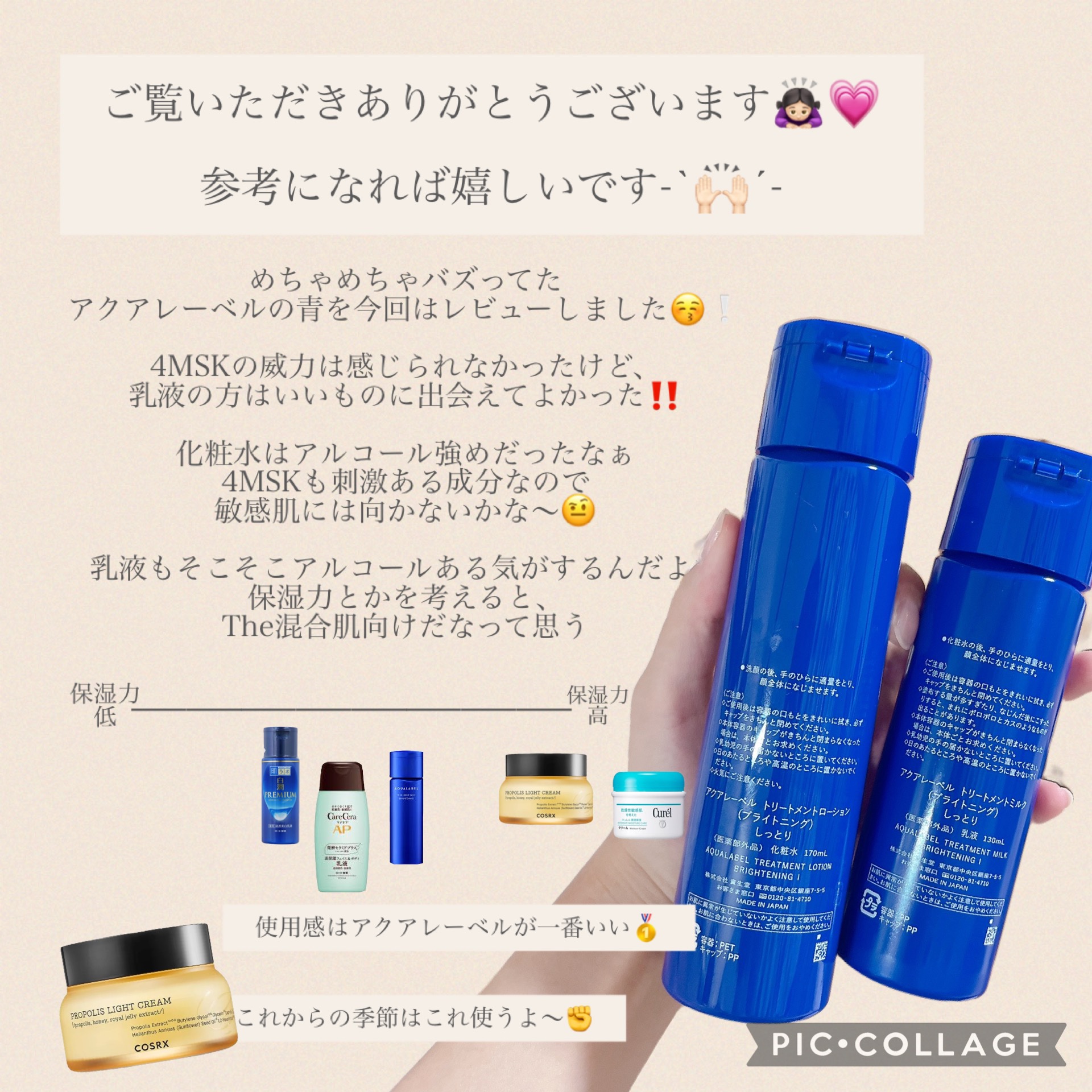\デパコス級だけど... タイプによっては乾燥注意かも⚠️/✼••┈┈••✼••┈┈••✼••┈┈••✼••┈┈••✼🔸アクアレーベル トリートメントローション(ブライトニング) しっとり ¥1,430🔸トリートメントミルク(ブライトニング)...