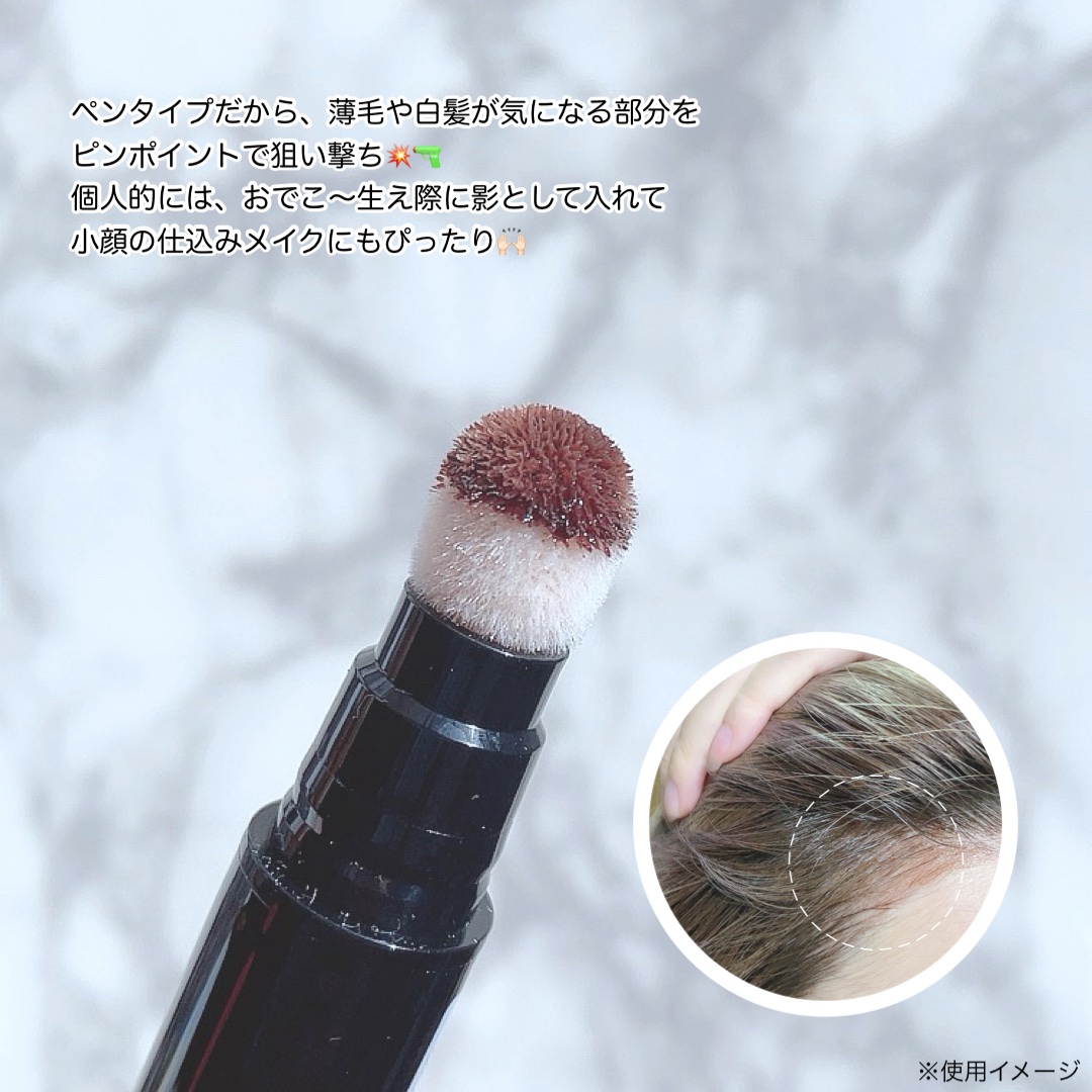 ポンポンするだけヘアティント😉♡ 商品名:メイクプロポーション ウルトラキープヘアティント 分け目の地肌や生え際の薄毛をささっと隠せる! 一時的な白髪隠しとしても。 ペンタイプなので、道具もいらずにすぐ描ける。 気になる部分をピンポイントで狙えるところもいい。
