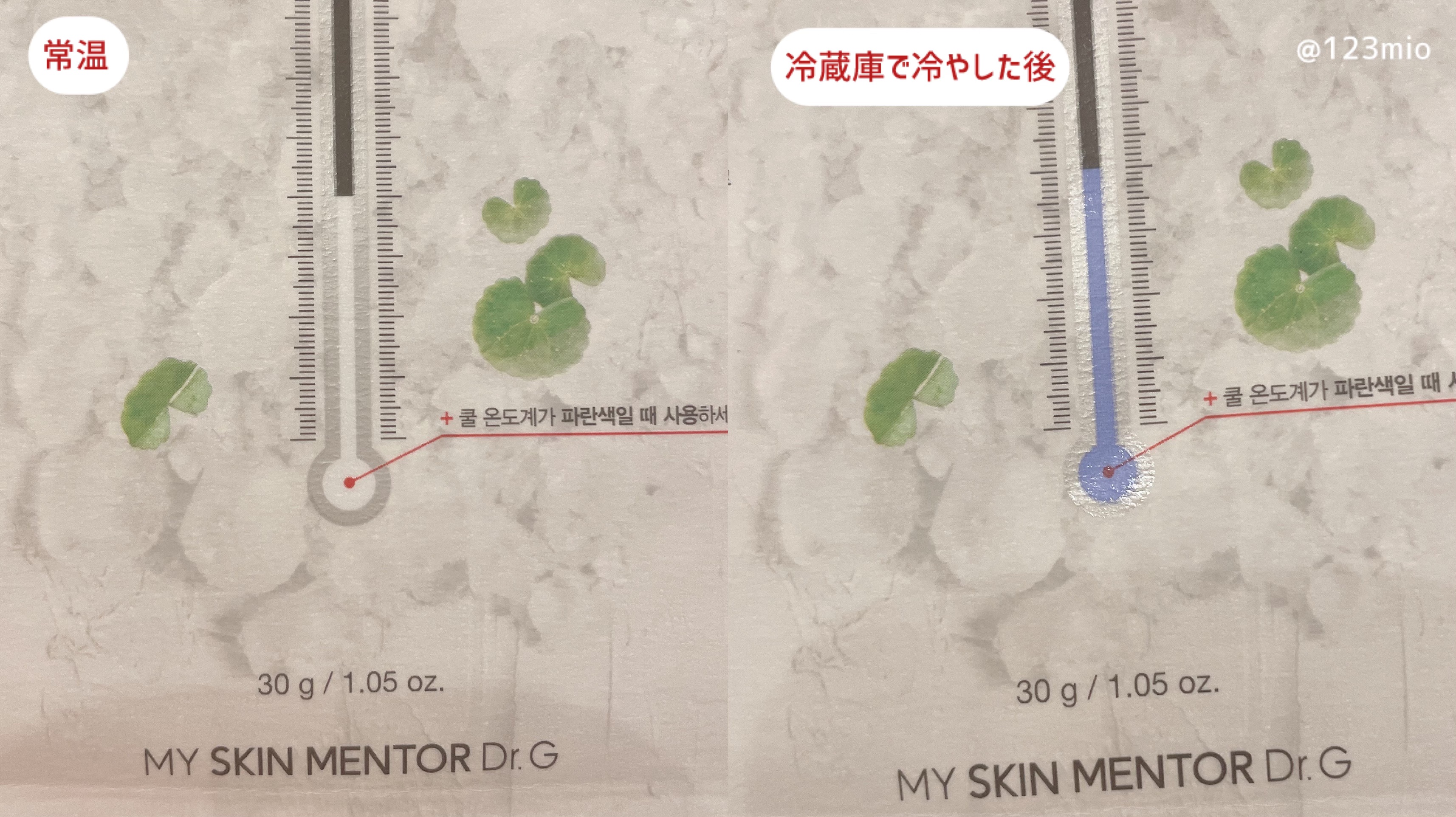 肌の温度をマイナス6度下げる!? 5種類のシカ成分と5種類のヒアルロン酸で、肌トラブルの鎮静だけでなく、水分ケアもできるマスク✨ 赤みなどのトラブルをケア🌿 ジェルテクスチャーのエッセンスがたっぷりマスクにしみこんでいます♡ 使用前に冷蔵庫に入れて冷やすと パッケージの温度計の色が変わるんです🌡️