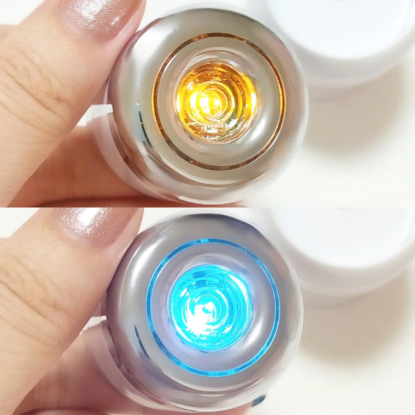 ぷるんとしたジェルテクスチャーの美容液です💚 スピキュールが入ってるので、チクチク感を感じます🪡 みずみずしい質感で伸びがよく、肌馴染みもいいのでべたつかないのが良かったです💓 洗い流し不要の他にないようなスクラブです! 感覚は普通にスクラブですが、塗るととろけて肌に馴染んでいきます🌟 結構しっとりするし、肌がつるんとする感じがしました☺️ イエローの振動吸収モードとブルーのEMSモードがあります💫 振動吸収モードは、振動しながら浸透を促してくれます✨ EMSモードは2段階のレベル調節が可能で、EMS初心者の私にはレベル1でも結構しっかりと刺激を感じられました🩵