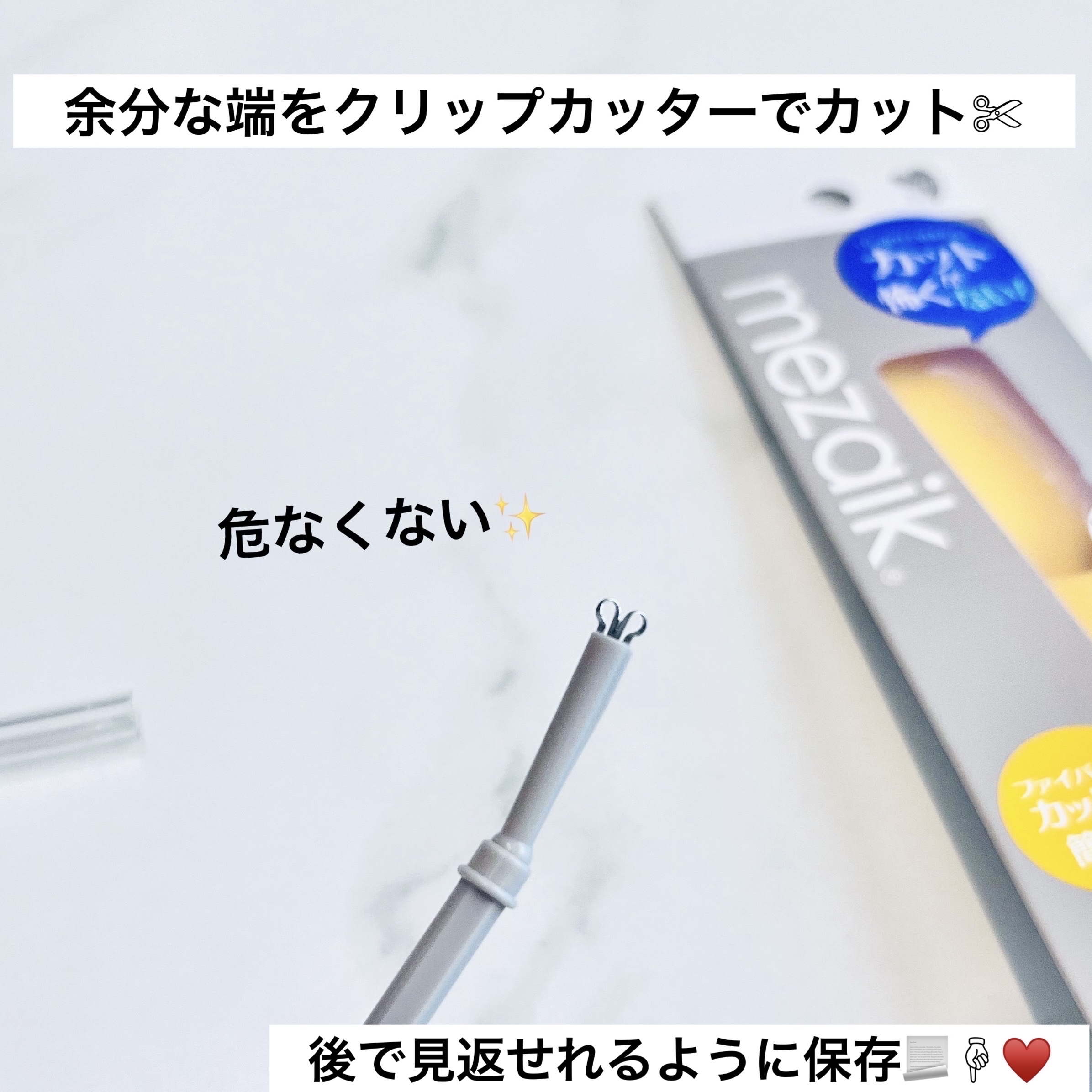 自然な二重にHowtouseStep1.メザイクフィクスプラスを二重にしたい線に塗る!これによりファイバーがより安定しやすくStep2.フリーファイバー120スタンダードタイプを引き伸ばして二重にした線に張るStep3.メザイククリップカッタ...
