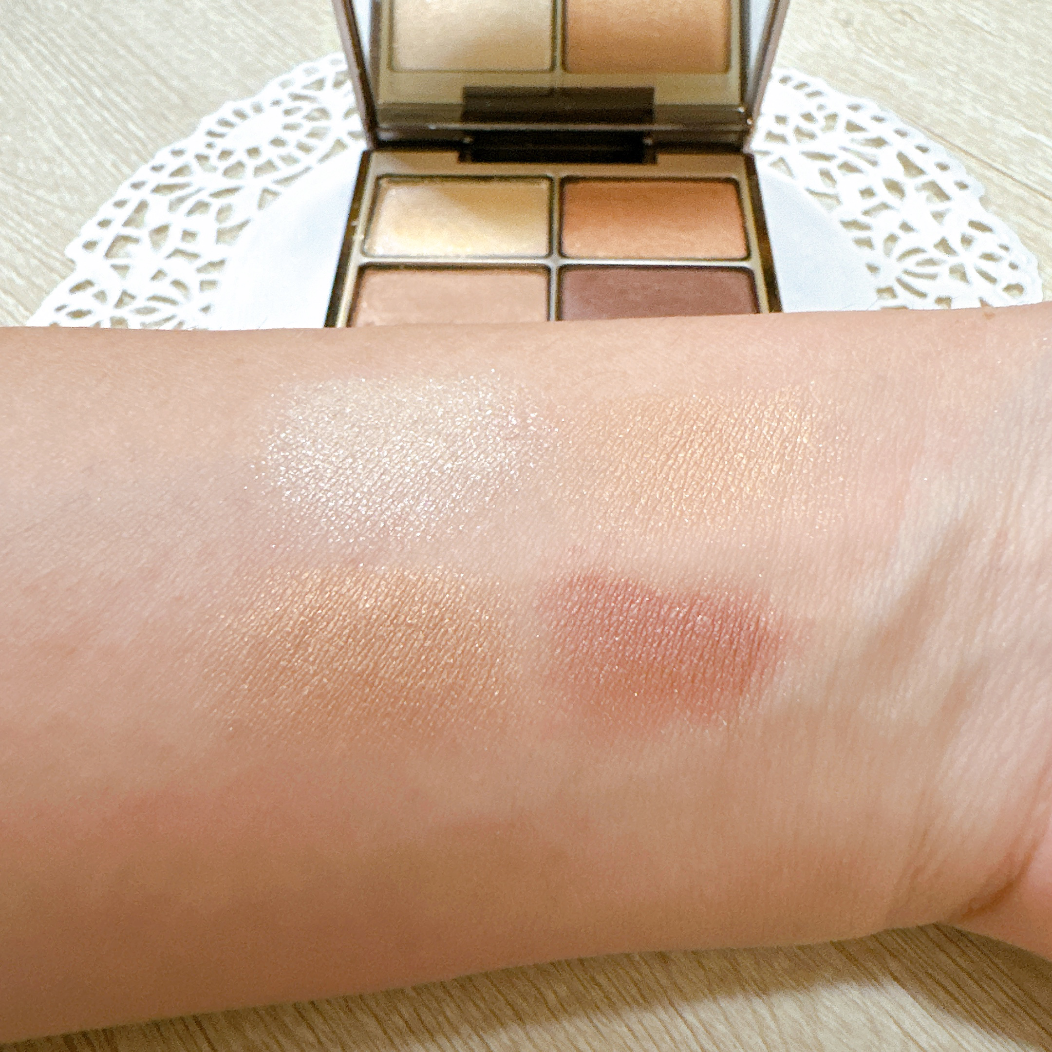 - ベージュを基調としながらも、発色、光感、透明度を計算した組み合わせをセットした4色アイシャドウ。光によって発色するルーセントカラーピグメントが、肌を美しく見せます。陰影を際立たせ、立体感ある印象的な目元を演出します。