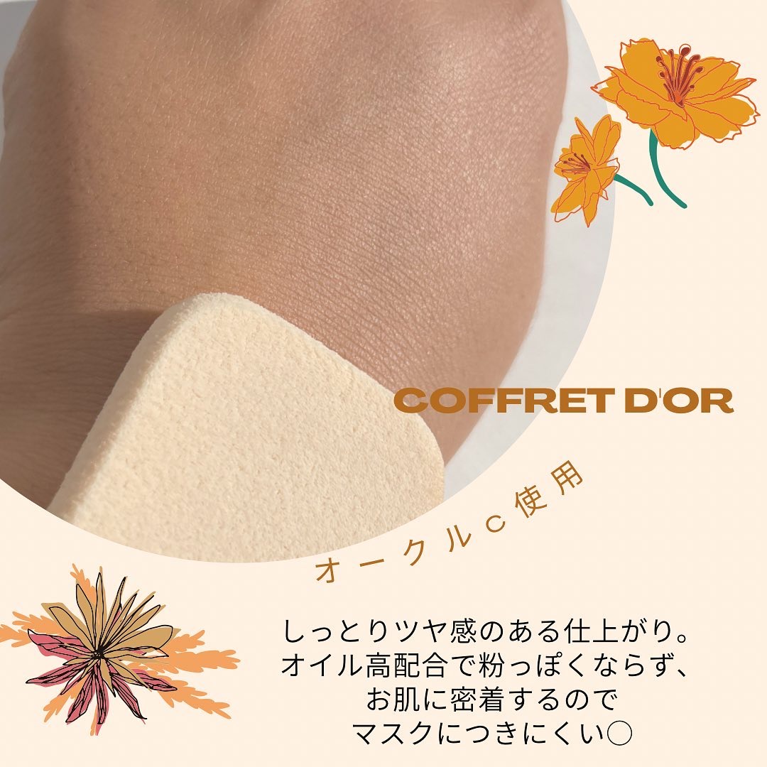 オイル高配合だからピタッと密着して毛穴をカバーし、粉感もない美しい仕上がり◎ 粉っぽく無い質感も好き!オイルの配合量が高いから粉浮きが目立たない◎ ナチュラルに見えるのに、隠したいポイントはきちんとカバーできているのが凄い。