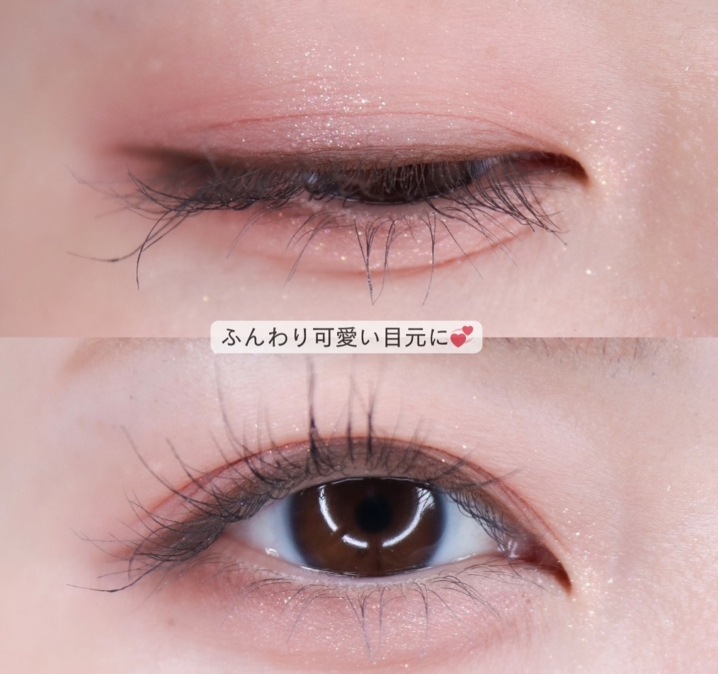 愛用している推しマスカラからボリュームタイプがでて嬉しい🥹✨ 既存のピンクは細かく密集したスリムブラシで1本1本塗りやすくダマになりにくい🩷 塗り重ねてもダマになりにくくマツエク並みにボリュームがでたからびっくりした🥹💞💞