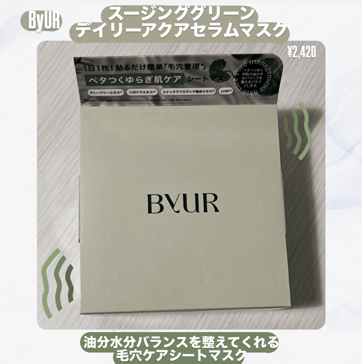 💚ByUR バイユアスージンググリーンデイリーアクアセラムマスク💚前回のメガ割で購入しました!!! シートの肌当たりがよくて使いやすいです✨薄めのシートでぴったり貼れるのがお気に入りです🫶 リピート予定です!!#ByUR#バイユア#スージング...
