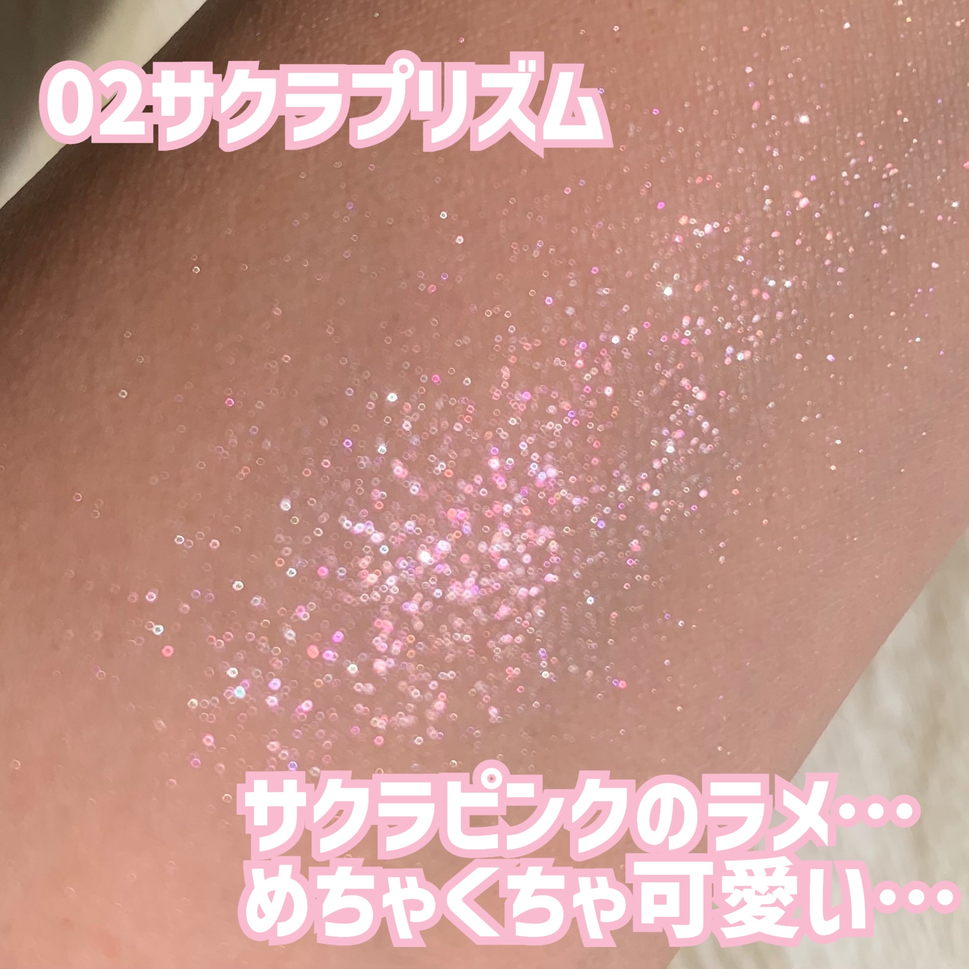 宝石のような輝きを放つラメシャドウ 生感ぷにっと質感のきらめきで濡れたような目元に しっとり高密着な保湿成分配合の高輝度グリッター 02.サクラプリズム:淡い桜の花びらのようなピンク