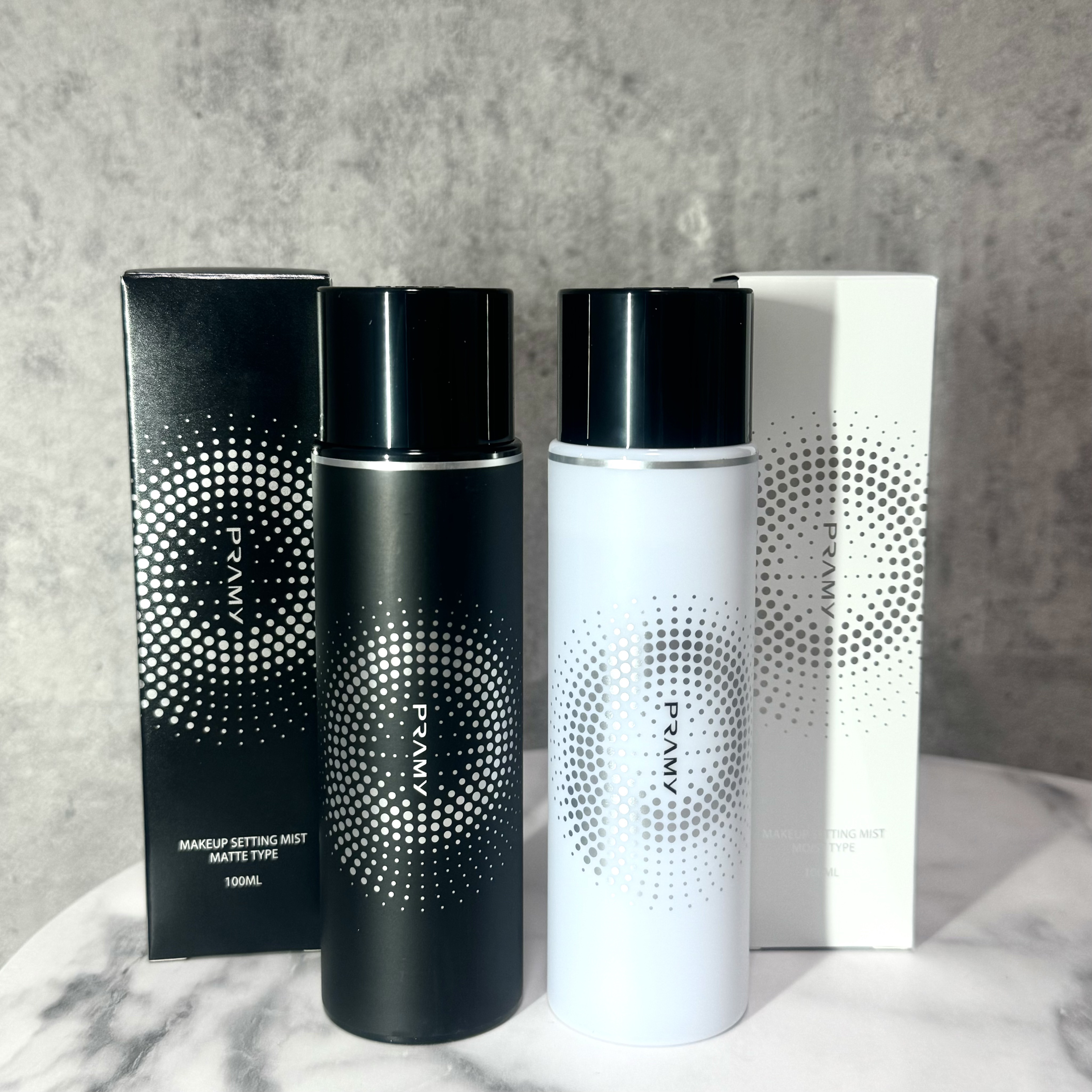 中国で爆売れしているプラミーのメイクアップセッティングミスト。これね、マットとモイストと仕上がりが選べるミストです。 マットタイプがあるのって珍しい!マットはテカリ・べたつきを防いでくれるから脂性肌さんにおすすめ。 どちらもダマスクバラ花水が入っているからか、めちゃくちゃいい香りするよ🌹