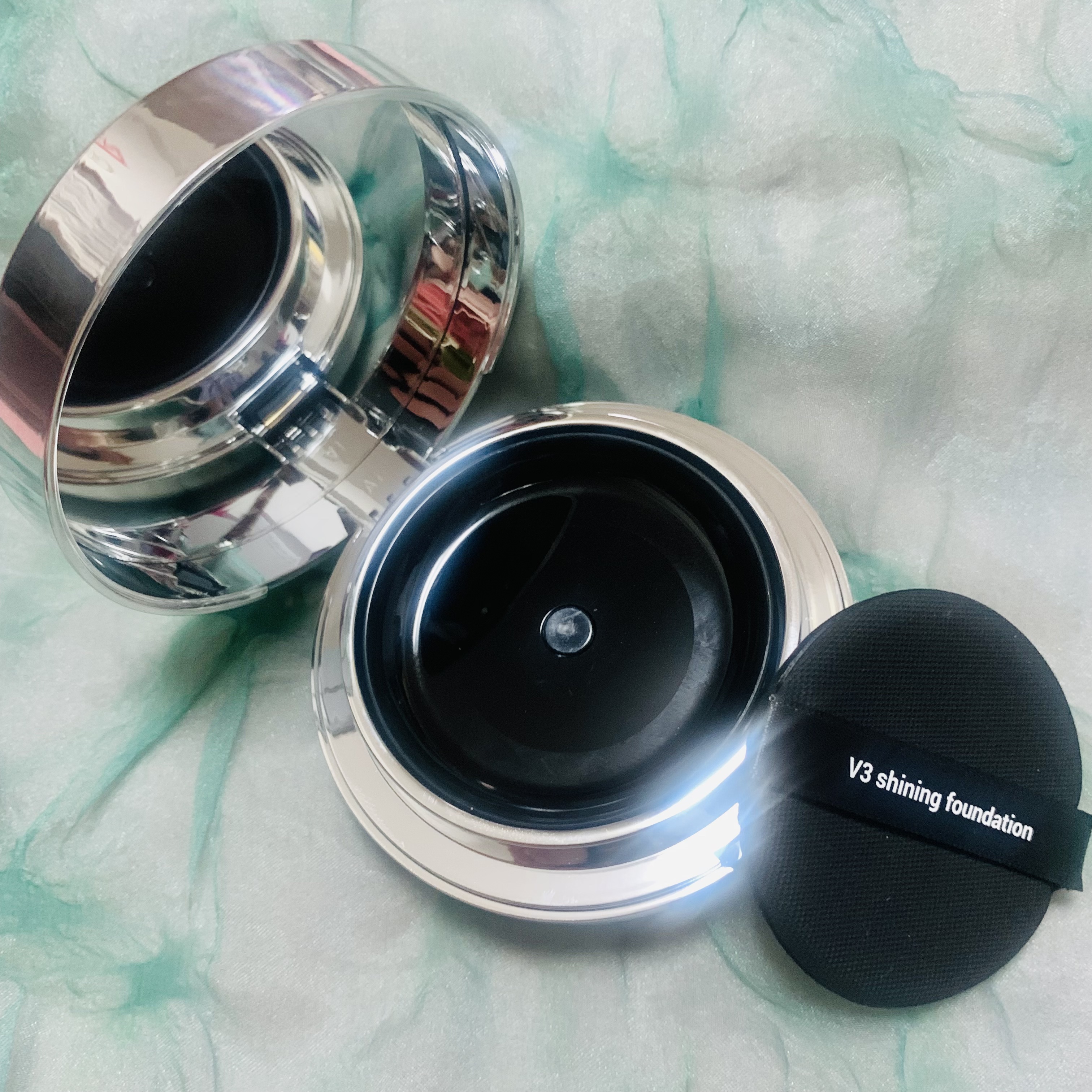 スピケア V3 シャイニングファンデーションです☆ SPF37 PA++。イノスピキュール*3000本配合。精製水の代わりにドクダミ水を使用。肌色に合わせて色が変化する低温発酵熟成処方。 色味に最初ビックリしましたが、肌に塗ると自然になじみます。カバー力も🙆 セミマット&ツヤ肌仕上がりかな🤔 しっとり系の化粧下地とよく合う気がします。素敵なお品ありがとうございました🩷