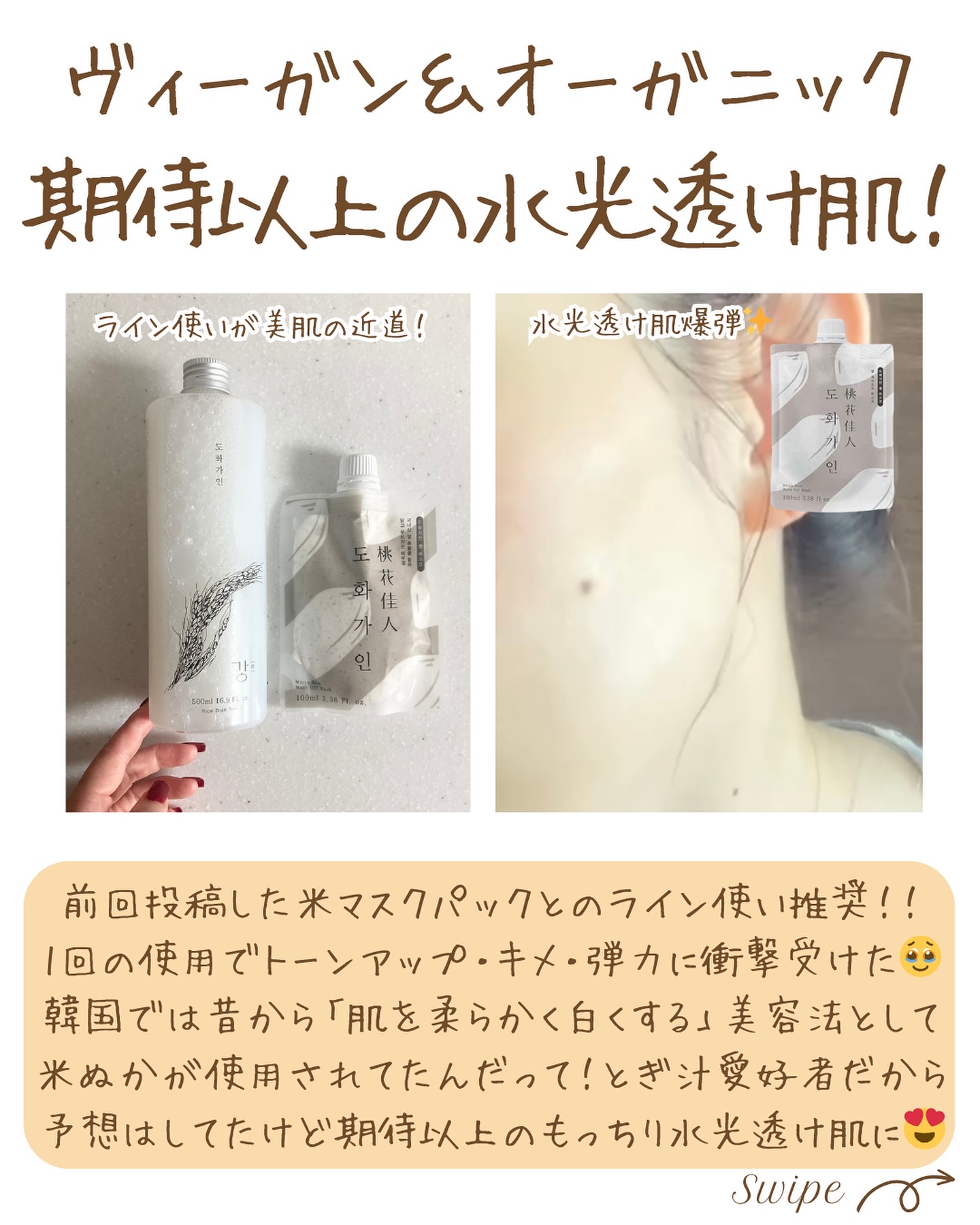 米ぬかを使ったオーガニック化粧品“House of Dohwa”🌾 白濁したみずみずしいトナーは500mlと大容量! 使ってみると香りも感じず優しいトナーがすーっと馴染んでいく♡ 米ぬかはお肌を柔らかく、白くするって昔からよく聞くよね😍