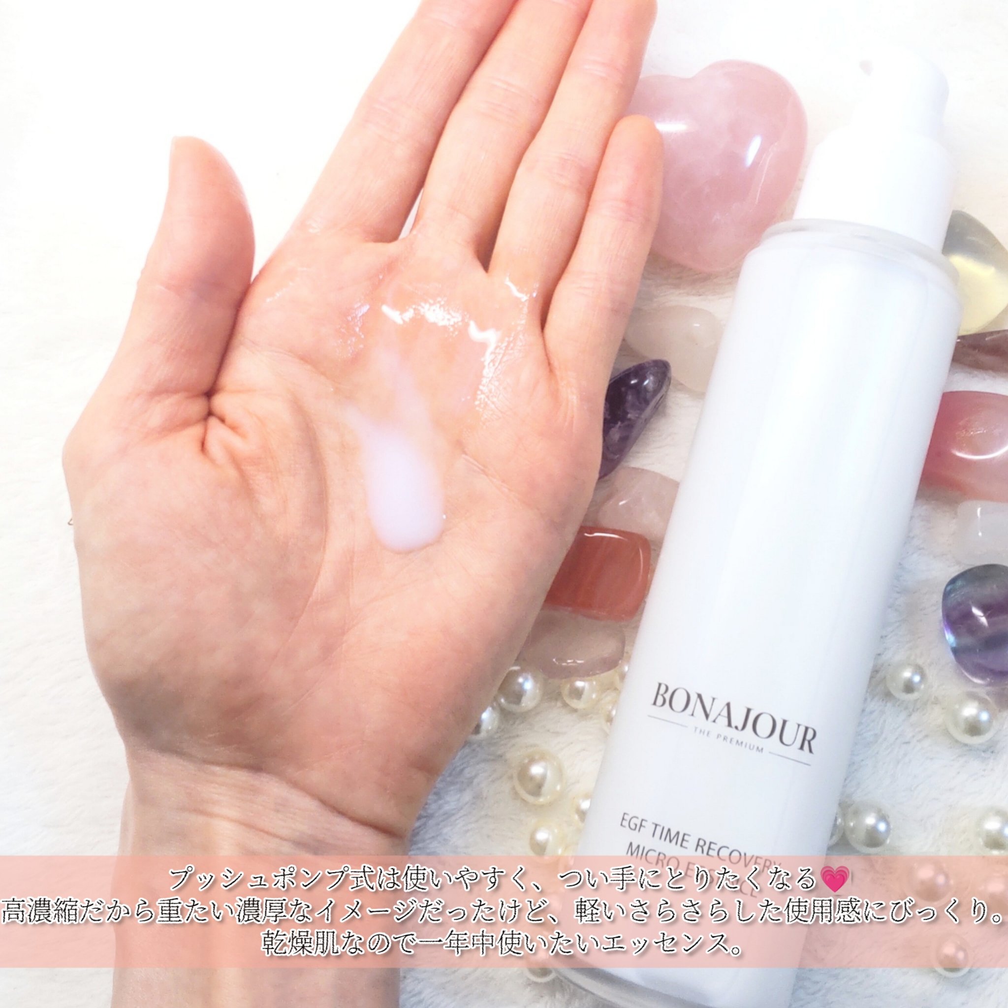 #PRBonajourのプレミアムラインをご紹介✨❤︎EGFタイムリカバリーマイクロエッセンス130ml☑︎トリュフ(セイヨウショウロ)抽出物☑︎EGF(整肌成分)を含む処方☑︎17種類のアミノ酸特許成分配合↪︎うるおいを与えハリ感のある肌印...