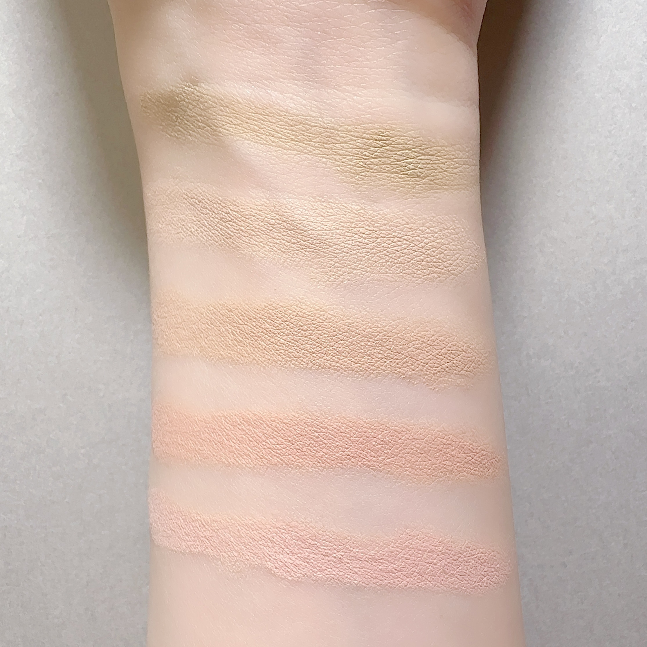 一つのパレットでカバーからカラーコントロールまでできちゃうコンシーラーパレット! 色んな肌悩みにアプローチする5色のカラーで、グリーン▶️くすみ、ニキビ跡とかの赤みカバー 密着力が高いコンシーラーで、よれにくかったよ!