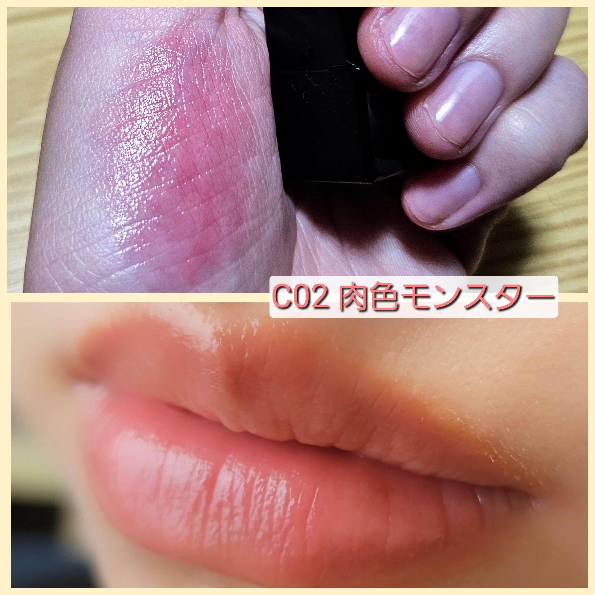C02肉色モンスターはうさぎ舌リップのような淡いピンクカラー🐰 ほんのり血色感を足してくれる! リプモンクリアトーンは価格が1,320円(税込)と通常のリプモンより価格設定が優しい🥹 リプモンクリアトーンは透明感のあるちゅるん系の仕上がり、通常のリプモンはジェル膜のむっちり系の仕上がりでどちらの仕上がりも好みで選べませんでした!