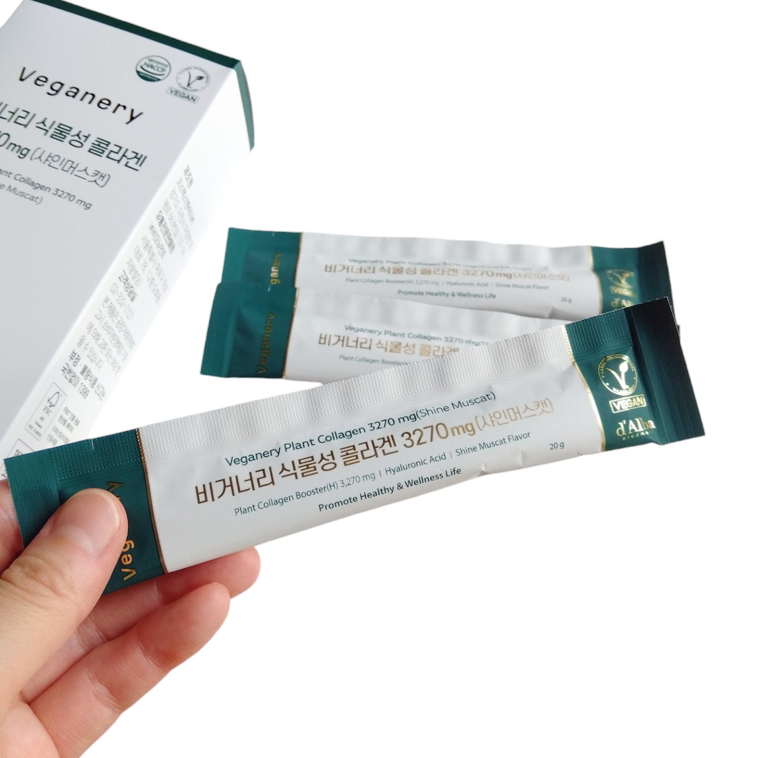 ヴィーガナリーはめっちゃ美味しくて🤍 植物性の高吸収ヴィーガンコラーゲン配合のゼリーとショットの2種類をお試ししてみたよ😉 ぷるぷるっとした弾力強めのゼリーで爽やかなシャインマスカット味です。コラーゲンの独特なニオイもなくておやつ感覚で食べられるよ◎ 100%ヴィーガンコラーゲンペプチドが2,000mg配合された液体タイプのドリンク。スッキリとした甘さのシャインマスカット味💚