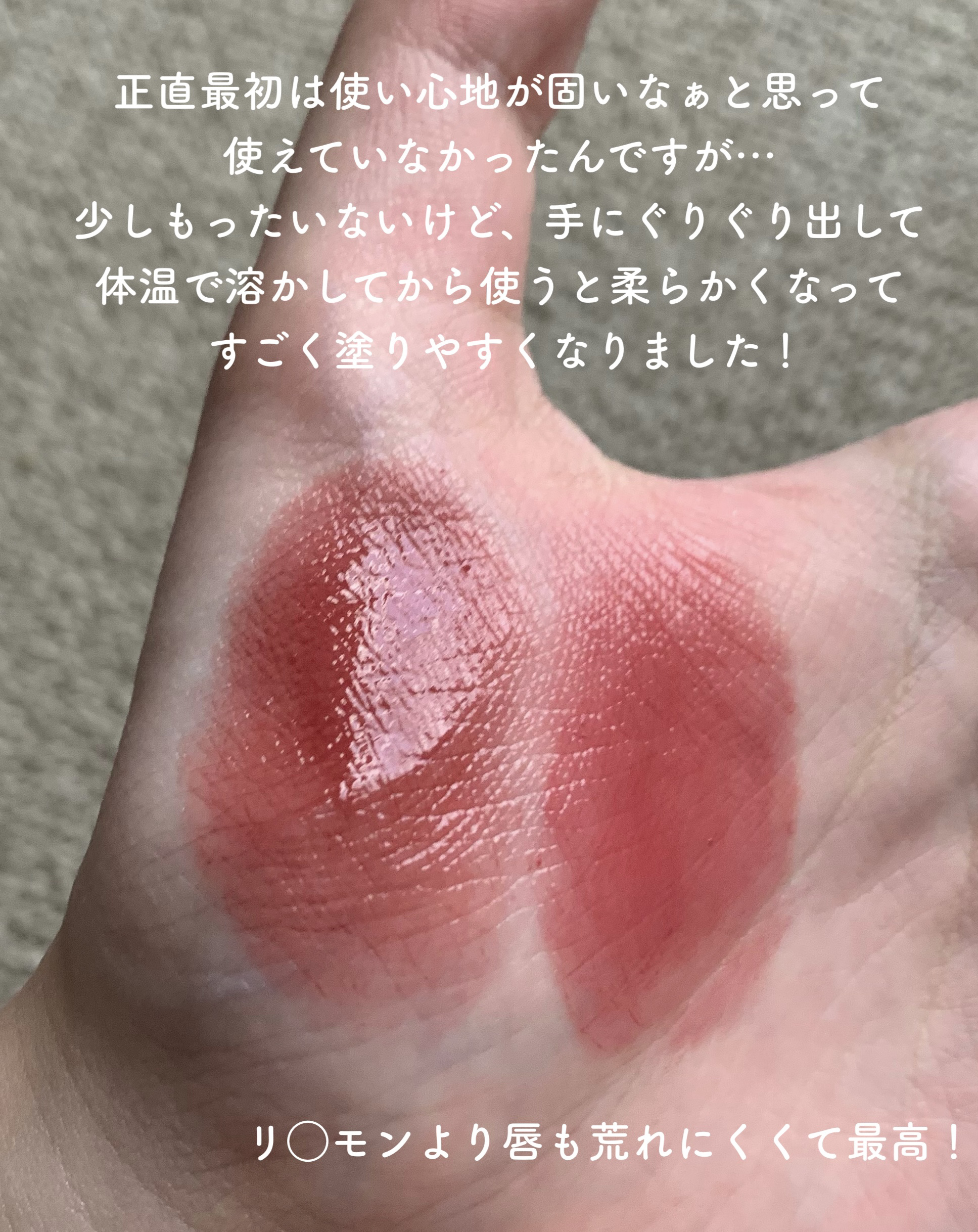 このリップ、見かけたことがある方も多いのではないでしょうか…! 実は持ち運びにめちゃくちゃ優秀なんです! 何より色が可愛すぎる… めちゃくちゃ粘膜色で、本当に可愛いんです🥹 色の種類も豊富なので、是非自分に合った色を探してみてください🫶🏻