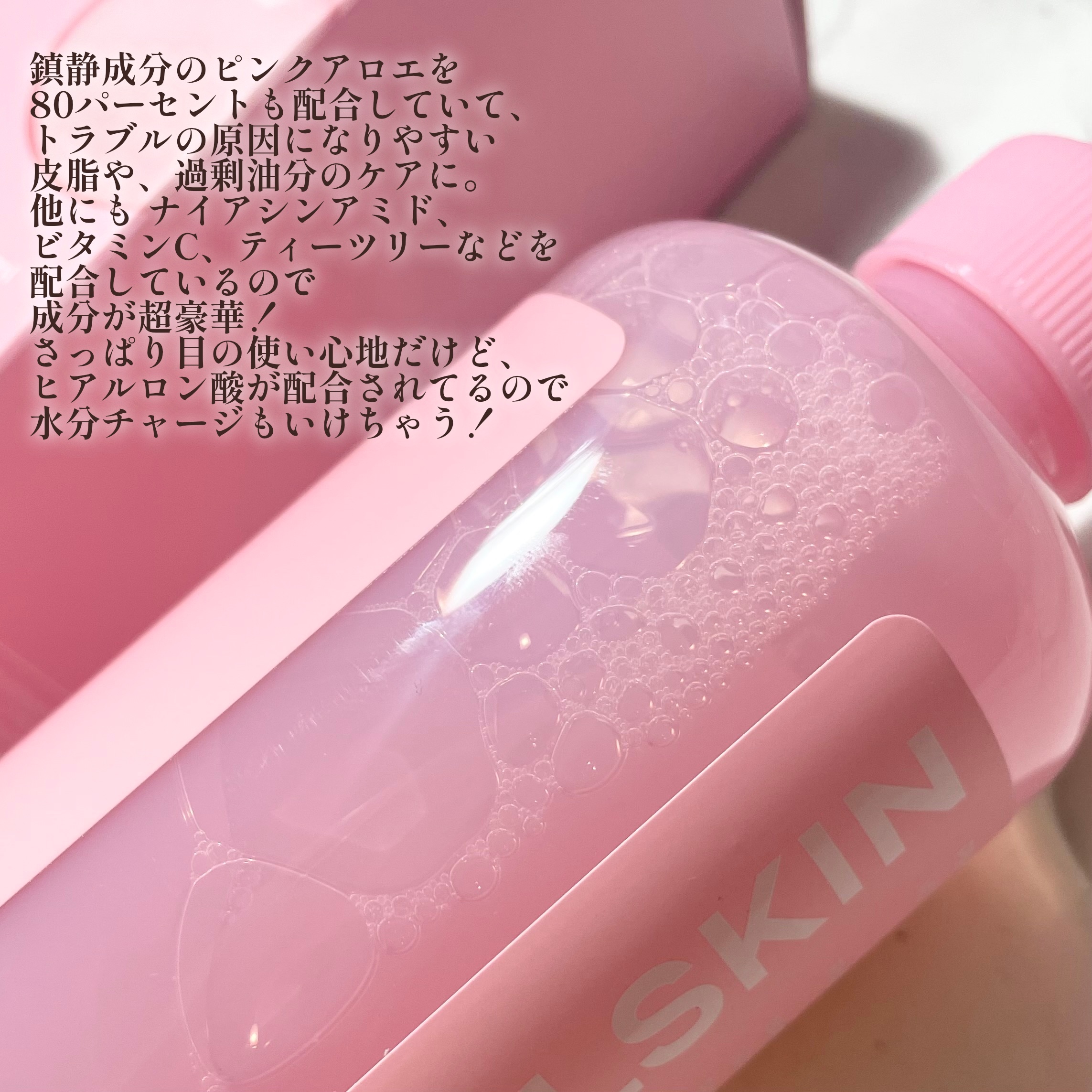 脂性肌さんや過剰な皮脂によるトラブル肌さんの為に作られたトナー✨ ピンクアロエをエッセンス級の配合量80%も含まれてるんだって😳 シャバシャバのさっぱりしたテクスチャー。しっとりした仕上がりでベタつきは無かった🥰
