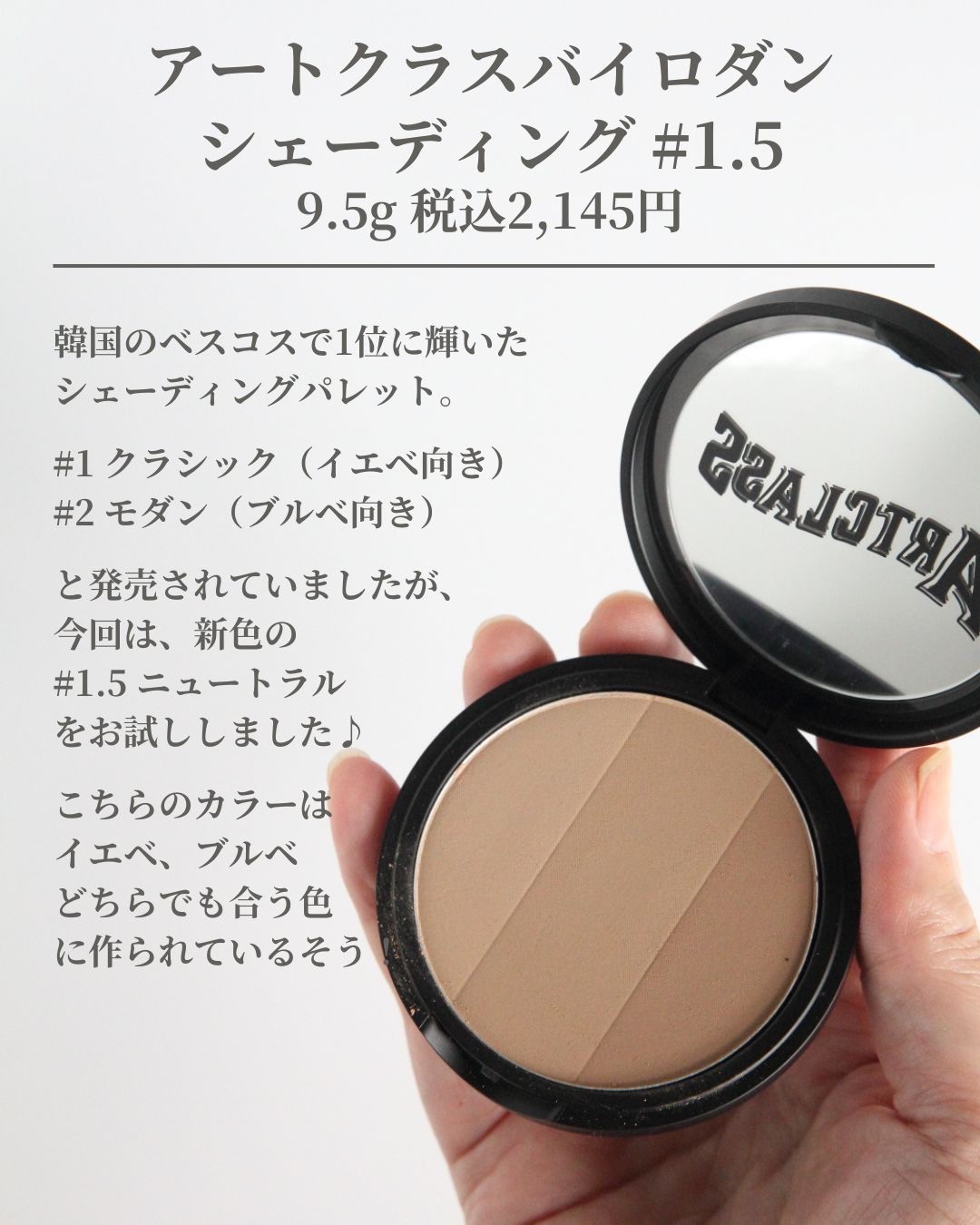 toocoolforschoolアートクラスバイロダンシェーディング1.5ニュートラルマスターブラシ付きブルベの自分には黄味が強かったため、顔が汚れている感じになってしまいました。笑ブラシがついていたり、3色なのはとても良いと思いました✨イエ...