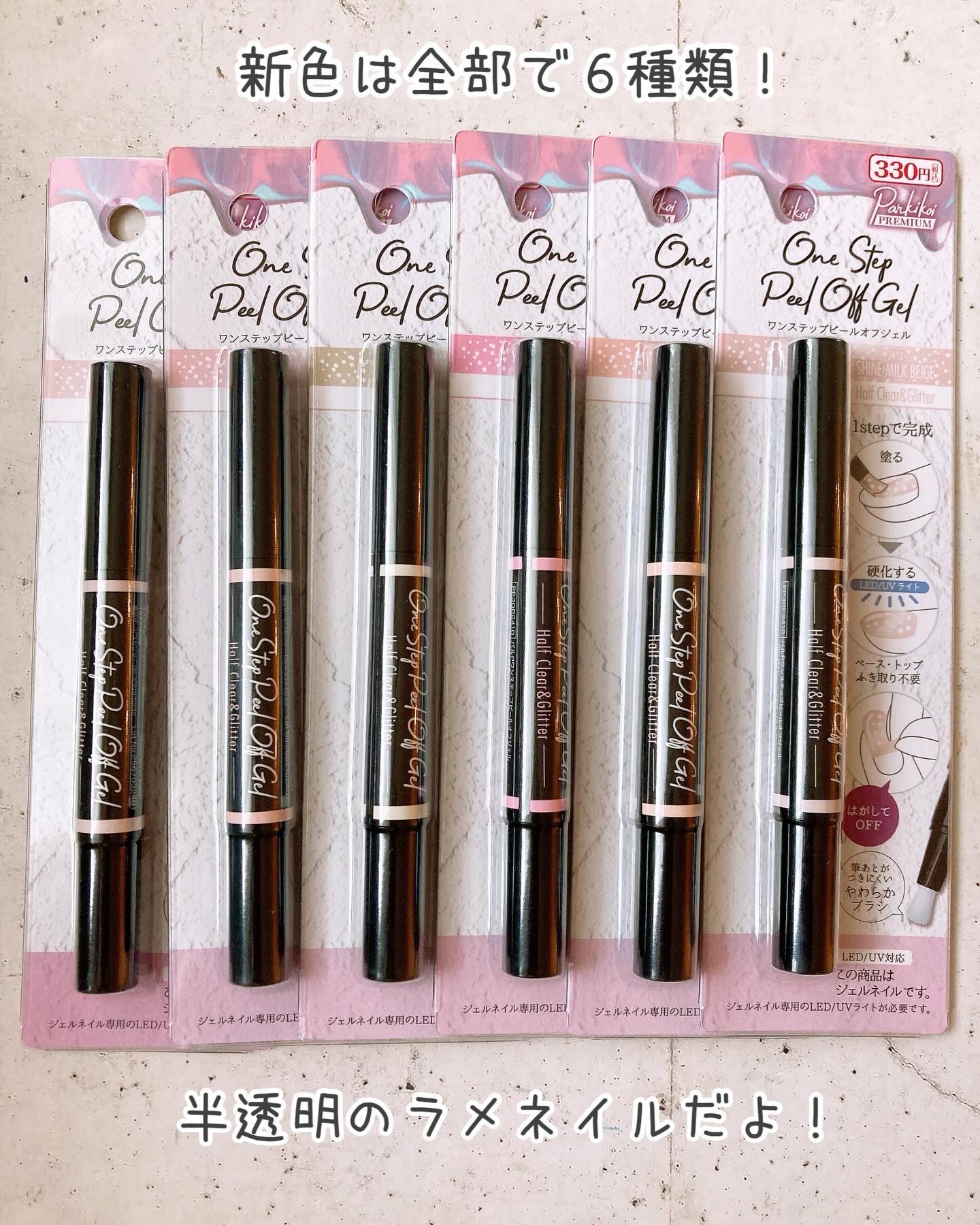 皆様こんばんは!まりです♪今回ご紹介するのは「parkikoiパルPワンステップピールオフジェル」お色味は<サンドベージュ>購入店舗はみんな大好きキャンドゥ!価格は330円です(税込)ペンタイプのジェルネイル、ベース、カラー、トップ1本で完結...