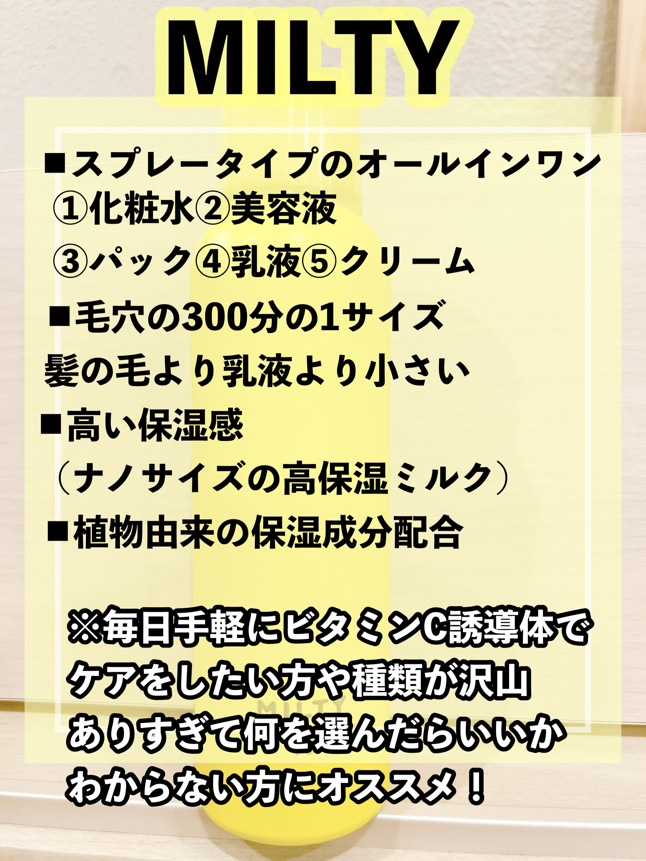 商品詳細情報ナリスアップ ミルティー モイスチャーミルクスプレー VC