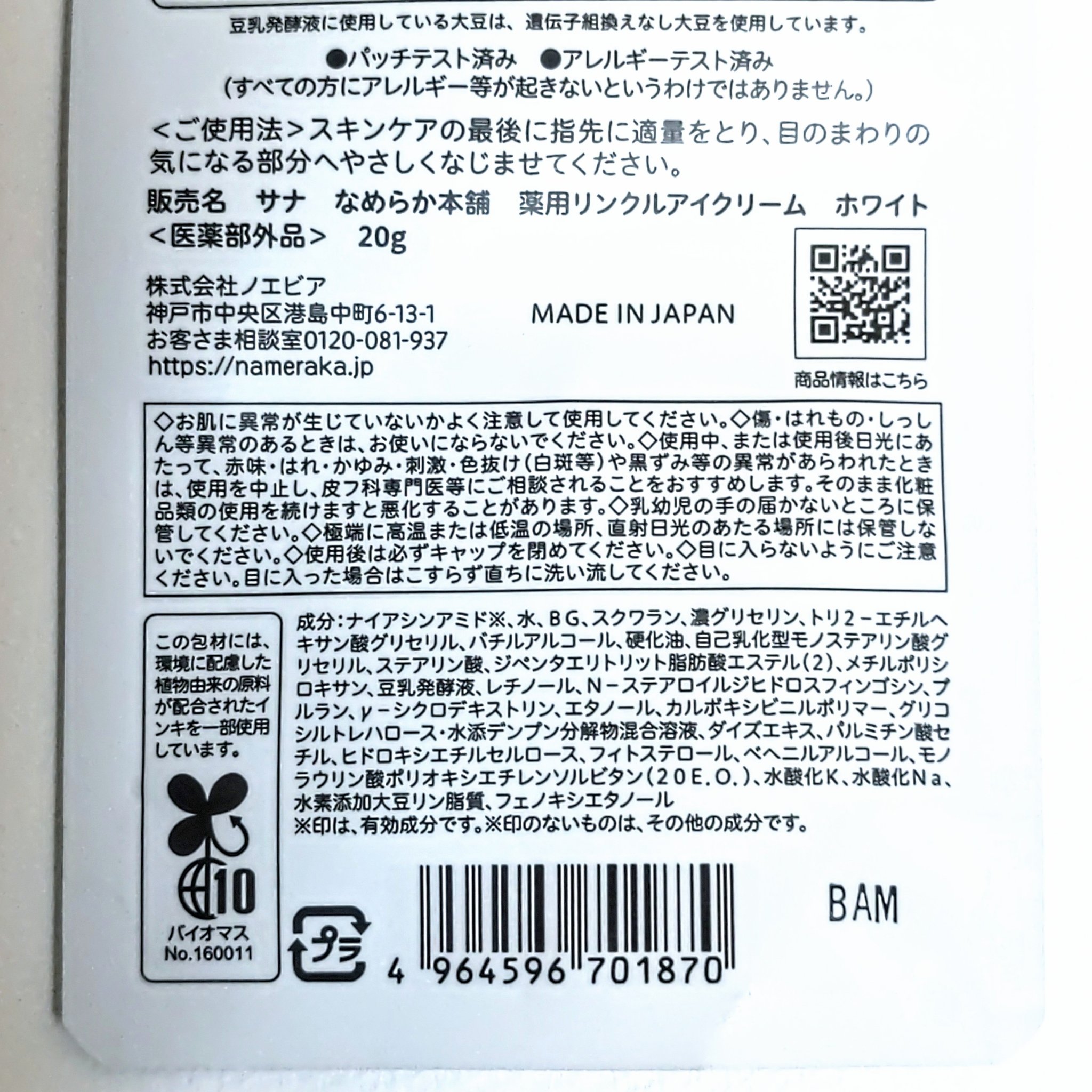 商品詳細情報なめらか本舗 薬用リンクルアイクリーム ホワイト