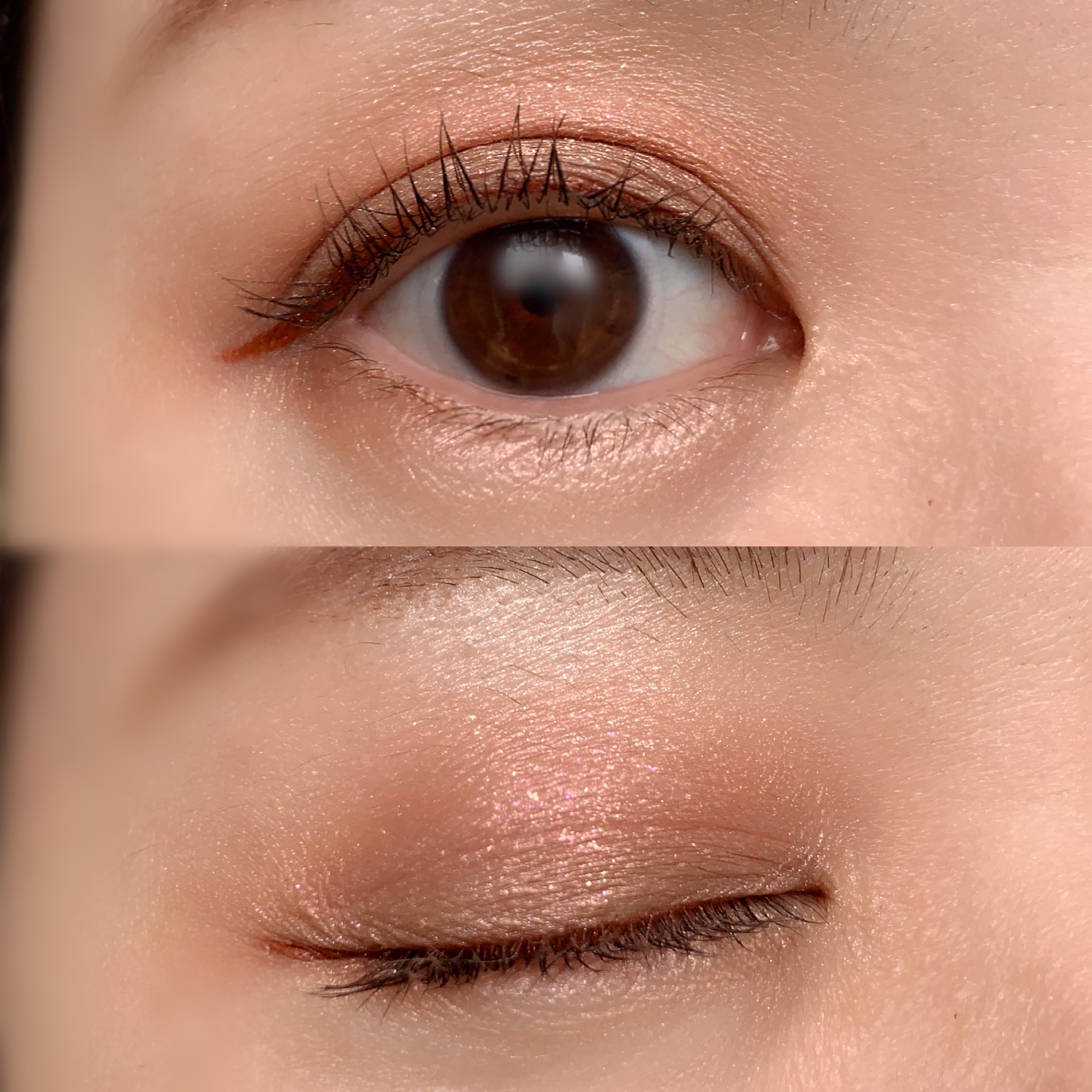 ピンクベージュを中心に、 ラメ&マットがバランス良く配色されていて、 締色が濃すぎないところも個人的にヒット。 意外としっかり色が乗ります。 まさに桃のようなうぶふわな印象🍑 ここまでピンクピンクしていてカルミンフリーなのは 嬉しいし、ありがたい♡