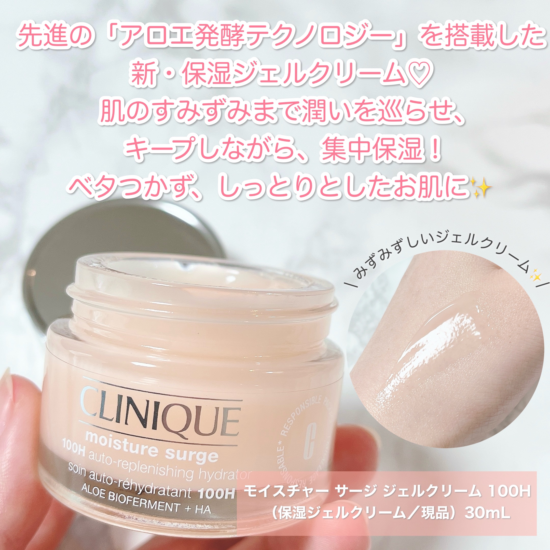 - クリニーク独自の先進「アロエ発酵テクノロジー」搭載。 新・保湿ジェルクリーム「モイスチャー サージ」誕生。 より深く*1、潤いつづく。 絶え間なく、きれいが満ちる。 皮膚科学から生まれたクリニークが届ける潤いのスペシャリスト。 先進の「アロエ発酵テクノロジー」を搭載した、新・保湿ジェルクリーム。 この独自のテクノロジーから生まれたアロエ発酵コンプレックス*2配合。 瞬時に、そして角質層の奥深くまで浸透。 肌のすみずみまで潤いを巡らせ、キープしながら、集中保湿。 まるでキメひとつひとつが潤うように、みずみずしさ満ちる肌へ。 *1 浸透は角質層まで *2アロエベラ葉エキス・乳酸桿菌培養溶解質・アロエベラ葉多糖体:保湿成分