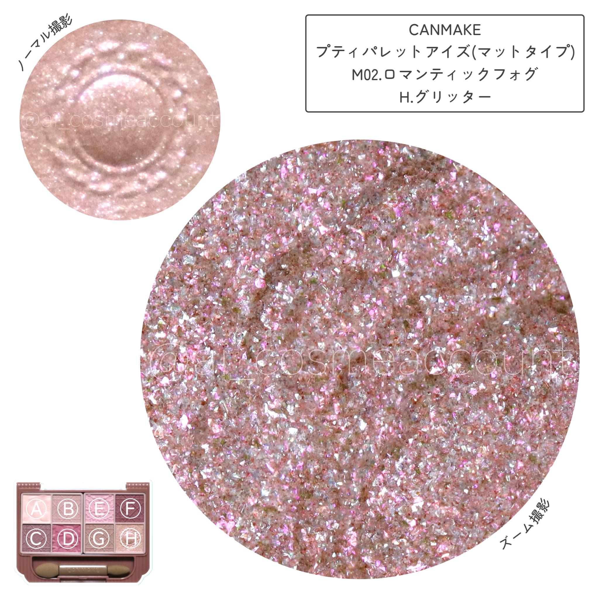 ☆キャンメイクプティパレットアイズマットタイプM02ロマンティックフォグ¥1,078キュートにもシックにも仕上がる青みピンクタルク、リンゴ酸ジイソステアリル、窒化ホウ素、スクワラン、トリエチルヘキサノイン、ジフェニルジメチコン、ラウリン酸へキ...