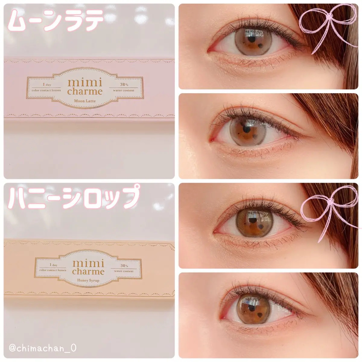 - 誰もが物語の主人公。 舞台の上でスポットライトを浴びているように瞳に魅力と光をまとわせ、毎日のわたしをより一層美しく輝かせる。 mimi charme(ミミシャルム)と一緒に物語の続きを。 <キティパフ> DIA14.2mm/着色直径13.8mm 太フチ無敵盛れ水光グレー あざと子猫ちゃんになれちゃう! 一軍太フチグレーレンズ <ジェムグレージュ> DIA14.2mm/着色直径13.5mm 細フチ大人っぽ水光グレージュ グレーなのにナチュラルでデイリー使いしやすい! <ドーリードロップ> DIA14.2mm/着色直径13.6mm 新感覚♡きゅるん盛れドーリーアイ 散りばめたブルーのハイライトがトレンド感満載! <ハニーシロップ> DIA14.2mm/着色直径13.5mm 細フチあざと水光ブラウン 新王道!垢抜け水光ブラウンレンズ <ムーンラテ> DIA14.2mm/着色直径13.0mm キラめき水光ミルキーベージュ オシャレな放射状ハイライトでまるで発光しているような瞳へ! <ロイヤルムーン> DIA14.2mm/着色直径13.0mm キラめき水光ミルキーグレー あの大人気カラームーンラテの色違い! 儚げうるみグレーレンズ カラーコンタクトレンズの不適正使用による眼障害の危険性等などがあります。 ●コンタクトレンズは高度管理医療機器です。不十分な洗浄・消毒など不適切なケアや、長時間・交換期間を超えた装用により、アレルギー性結膜炎、角膜感染症、角膜潰瘍等の重篤な眼障害が発生する危険性があります ●ご使用前に取扱説明書を確認してください 使用上の留意事項 ●眼科医院等を受診してからお求めください ●眼に異常を感じたら直ちにレンズ使用を中止し、お近くの眼科等で診察を受けてください ●医師の指示にしたがってご使用ください ●コンタクトレンズを装用する場合、自覚症状がなくても、眼科医院等での定期検査を受けてください ●レンズに不具合がある場合は使用しないでください