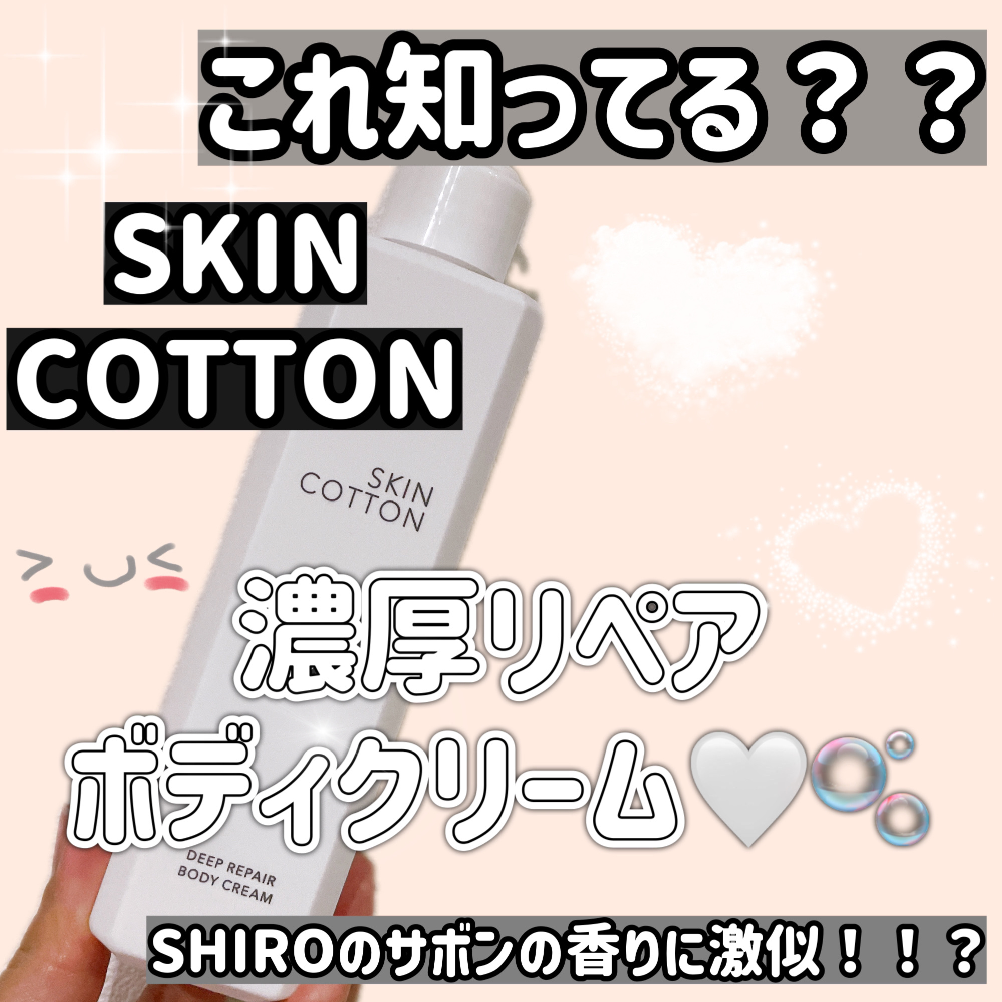 SKINCOTTON濃厚リペア ボディクリーム コットンサボンの香りさらさらのテクスチャーなのにしっかり保湿してくるボディクリーム🍀クリームというより水っぽいテクスチャーだから保湿してくれるのかな?って不安だったけど、乾燥知らずのしっとり保湿...