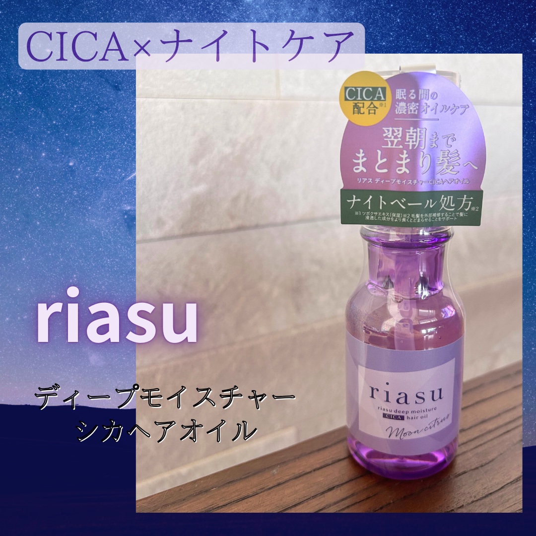 CICA×ナイトケア🛏️💜 riaseのディープモイスチャーCICAシリーズがリニューアル!全てムーンシトラスの香りです🌙 CICA(ツボクサエキス)が髪の保湿と頭皮へのケアでしっとりまとまる髪へ導いてくれます☺️ 髪硬め、毛量多めの方は特に使用しやすいと思います👏🏻 パサつきや広がりに悩んでいてボリュームダウンを求める方にとてもオススメです!