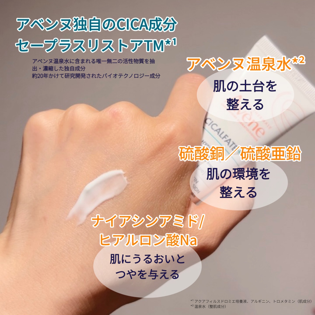 - 肌の治安*1を守るアベンヌCICA 肌あれ因子を科学して、ゆるぎないなめらか美肌へ 肌の戦うチカラ*1に着目。 アベンヌ独自のCICA成分*2が乾燥などの外部刺激から守って、肌あれを防ぎ、 健やかな肌環境をサポートするなめらかリペアミルク 〇セープラスリストアTM【アベンヌ独自開発CICA成分】*2が、肌本来の戦うチカラをサポートし、ゆらぎに負けない素肌環境を目指します。 〇アベンヌ温泉水*3が、肌のうるおいバリアを守ります。 〇整肌成分(硫酸銅、硫酸亜鉛)が、あれがちな肌の環境をサポートします。 〇ヒアルロン酸Na※4・ナイアシンアミド*4配合で、長時間うるおいが持続し、肌につやを与えます。 〇のびがよく、べたつかない、なめらかなテクスチャーです。 *1 肌を健やかに保つこと *2 アクアフィルスドロミエ培養液、アルギニン、トロメタミン(整肌成分) *3 温泉水(整肌成分) *4 整肌成分