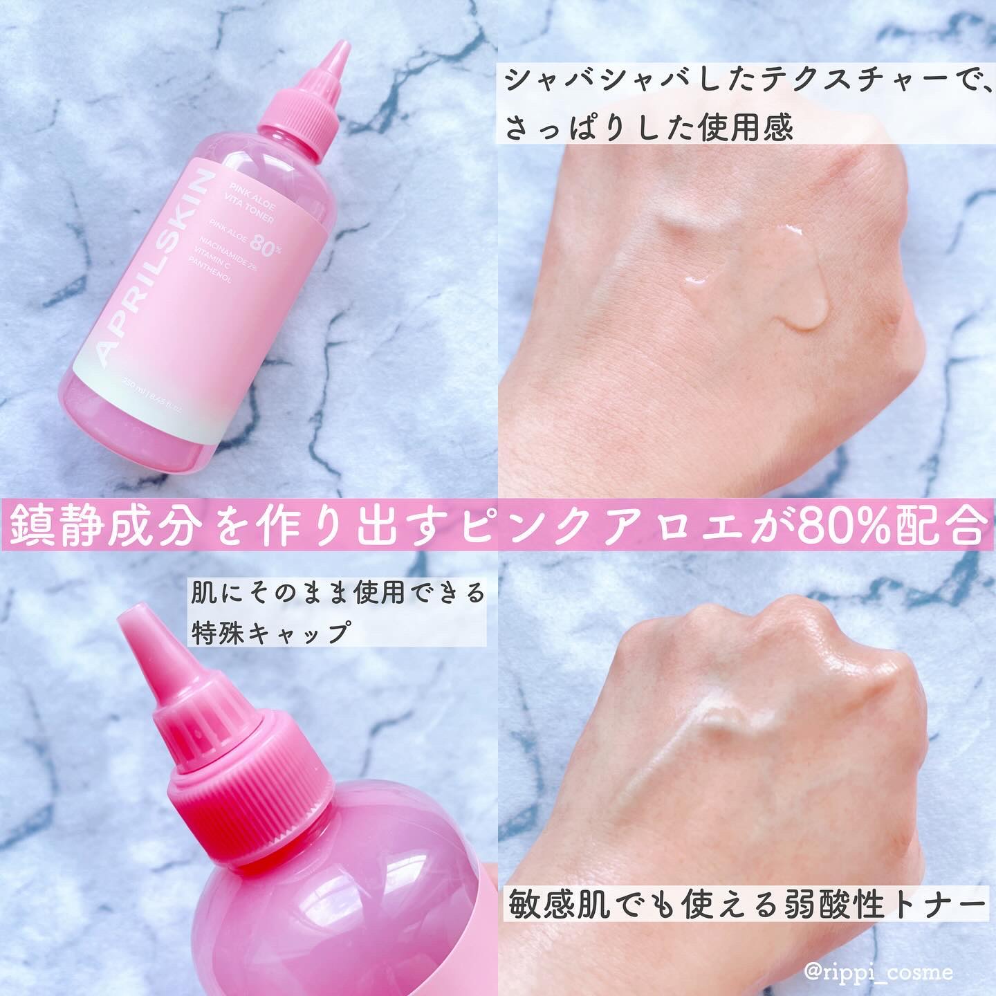 \トラブル肌にピンクアロエ🩷💚/▶︎APRILSKINピンクアロエビタトナートラブル肌のために作られたピンクアロエ80%配合のさっぱり系トナー🫧弱酸性で敏感肌*でも使える処方だよ✨コットンにヒタヒタに染み込ませてクールダウンパックとしても🙆...