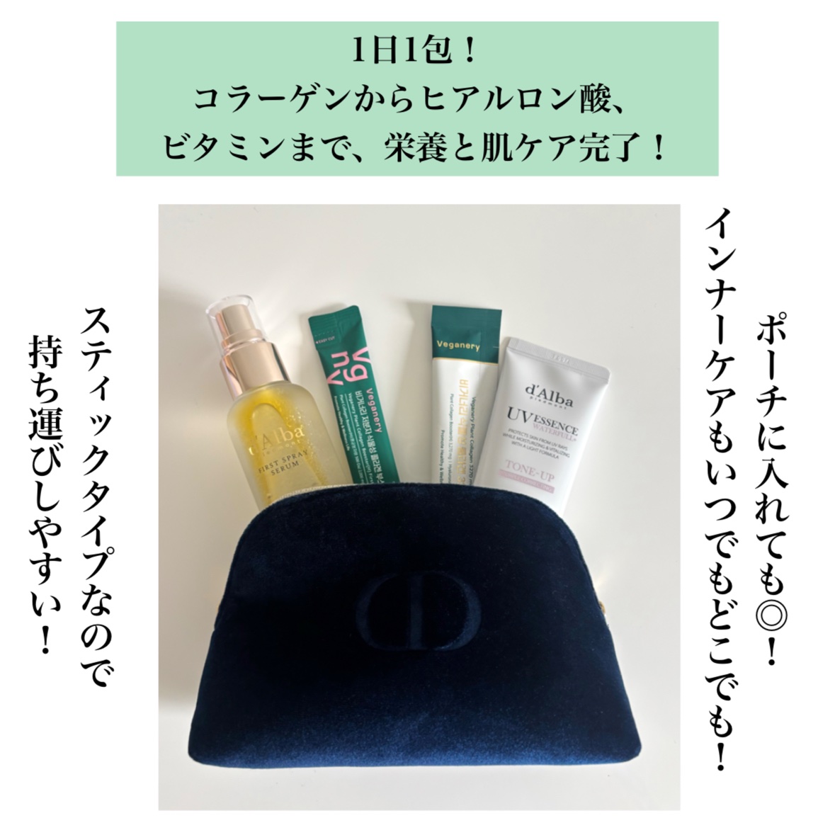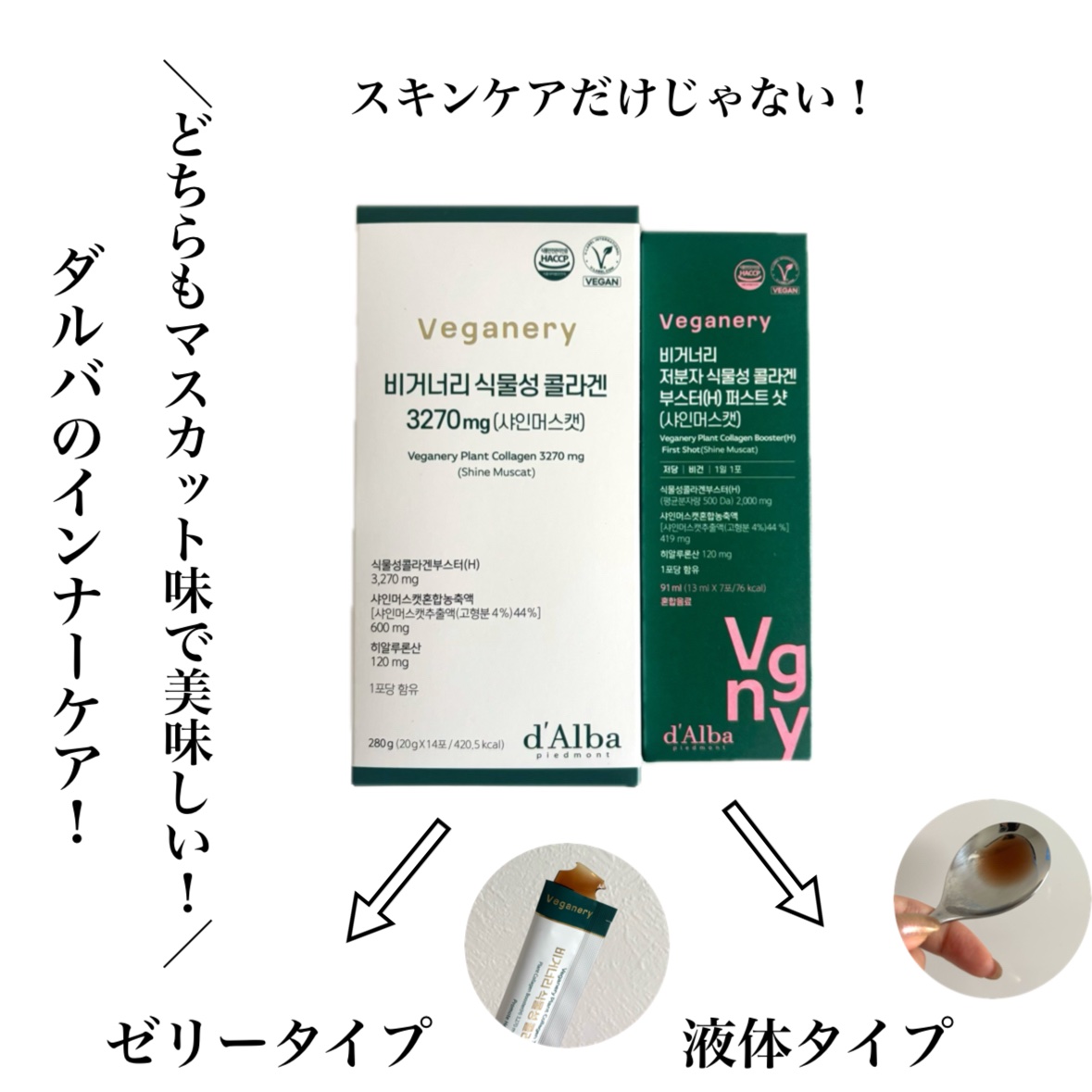 1日1包でコラーゲンからヒアルロン酸、ビタミンまで、栄養と肌ケアが完了するアイテム💖 体内吸収力が優れた低分子コラーゲンブースターで高い吸収率✨ イタリアのビーガン認証コラーゲン🌿 着色料カフェインフリーの安全な成分 ゼリータイプのヴィーガナリー植物性コラーゲン3270mg ドリンクタイプのヴィーガナリー低分子植物性コラーゲンブースターファーストショット