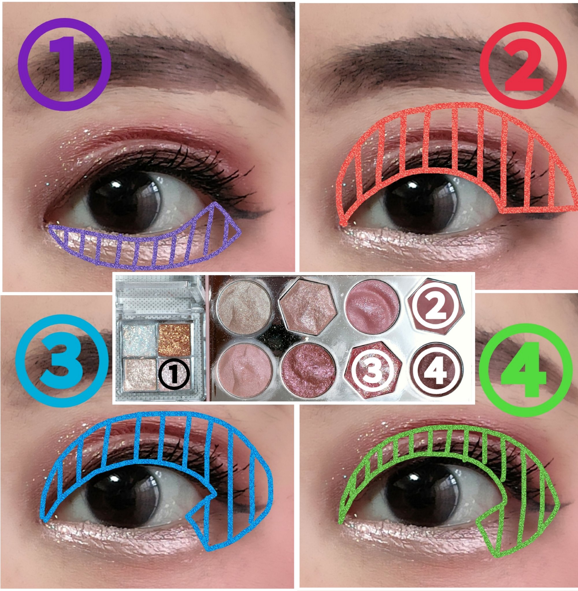 アイシャドウパレットは、URGLAM UR GLAMBLOOMING EYE COLOR PALETTE 02を、使用しました。 マスカラは、MAYBELLINE NEW YORK コロッサルボリュームエクスプレスを、まつ毛全体にまんべんなく塗ります。 リップは、wet 'n' wild MegaLast Lip Colorを、唇全体にまんべんなく塗ります。