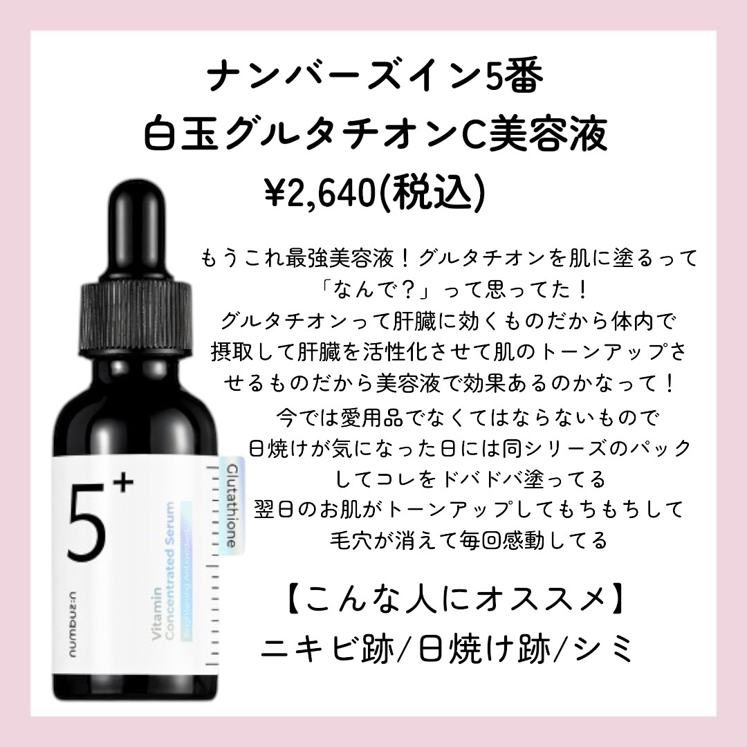 numbuzin 5番 白玉グルタチオンC美容液 | 2,420円 |