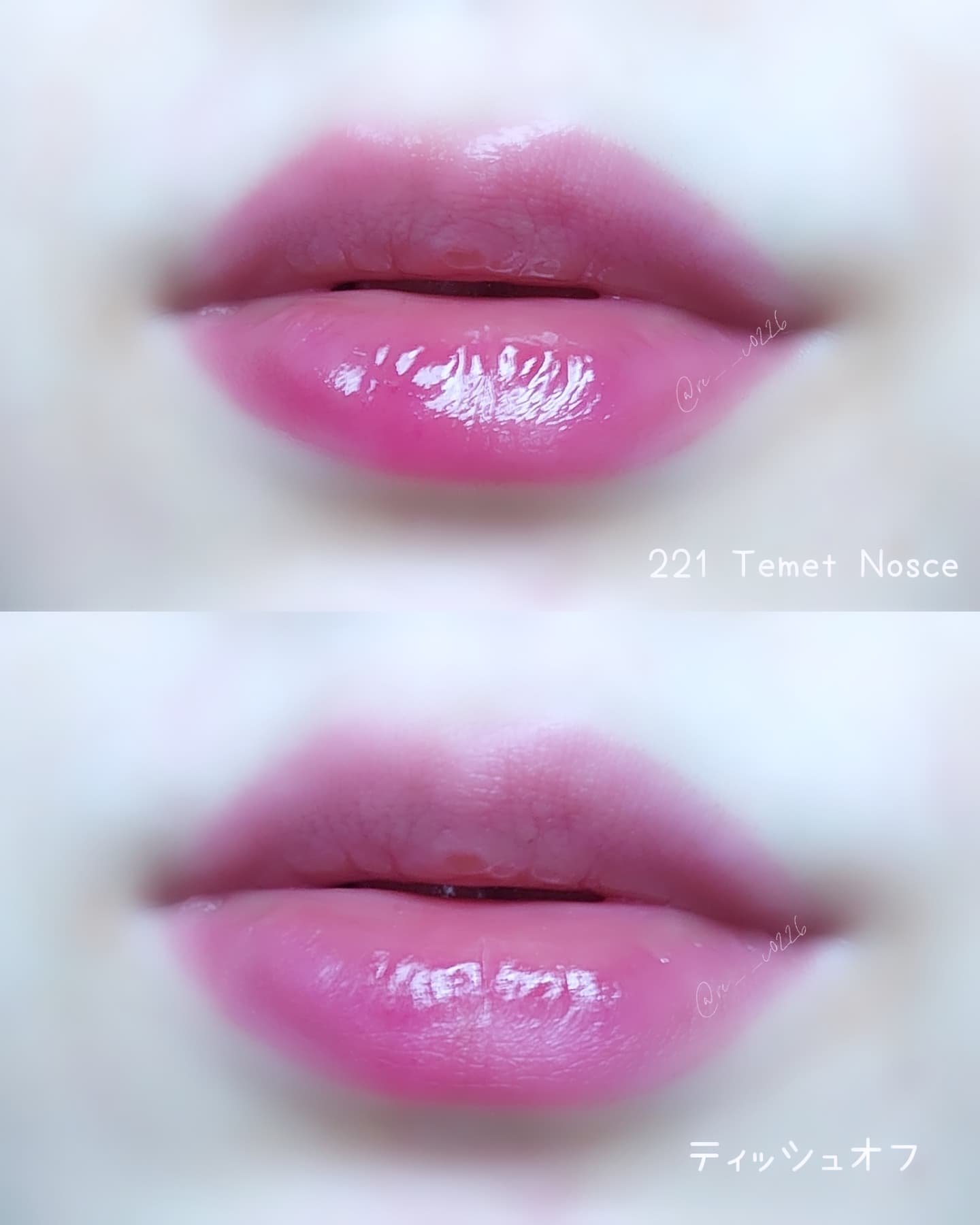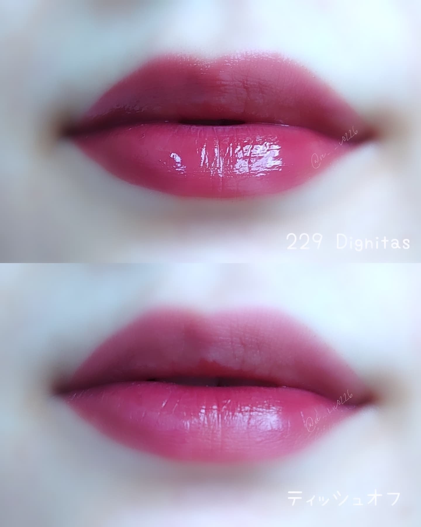 しっとりとした光沢感とべたつかないつけ心地、塗った直後にティッシュオフしても残る色味、絶妙なカラー展開が魅力のDintoティント♡ 221 Temet Nosce アッシュなモーヴピンク。青みと白みのバランスがかっわいいお気に入りカラー 229 Dignitas ダスティーローズ。そんなに深みはなくてちゃんと血色感の出るカラー。
