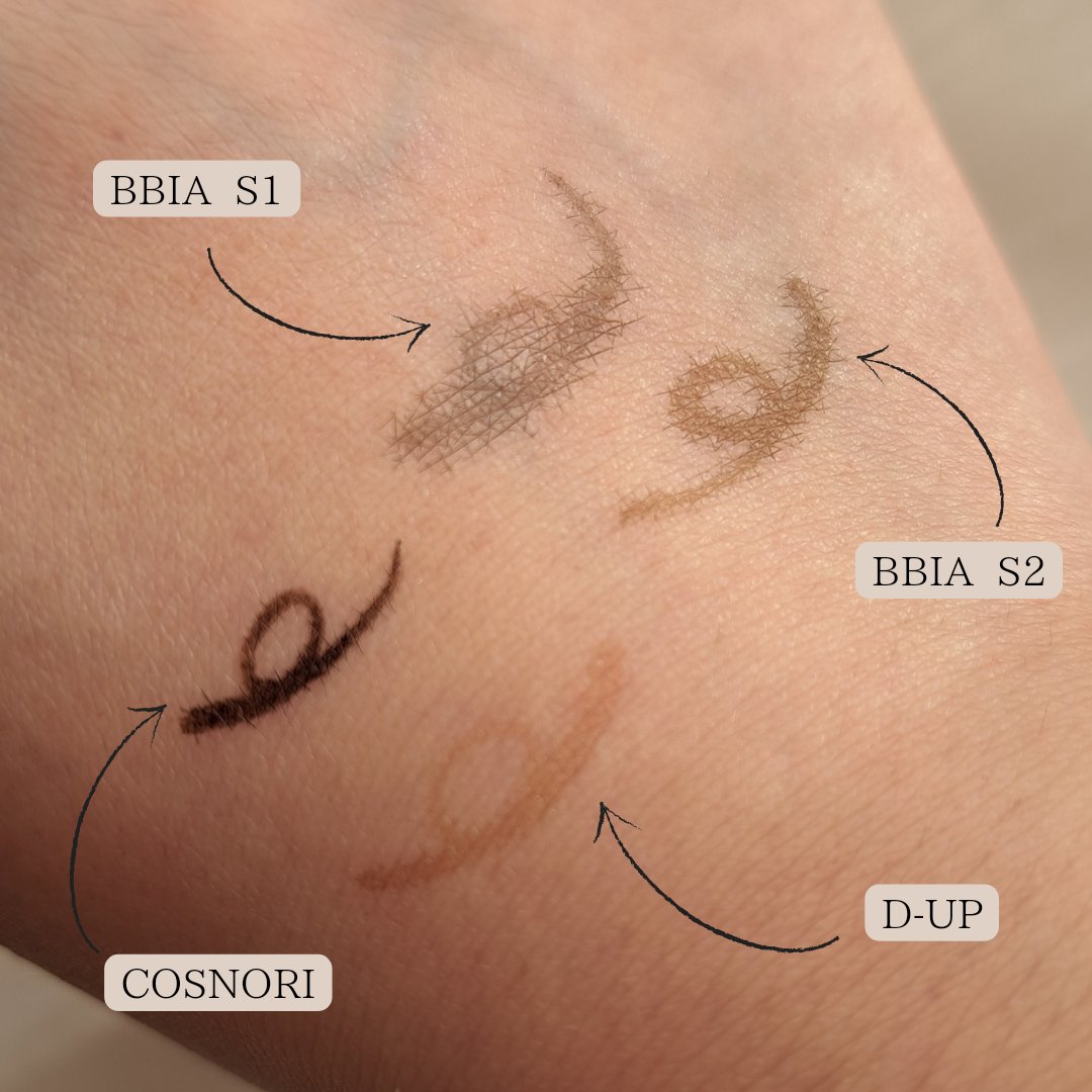 - <S1 ライトブラックS> 精製水、(アクリレーツ/アクリル酸エチルヘキシル)コポリマー、ブチレングリコール、(アクリレーツ/メタクリル酸ジメチルアミノエチル)コポリマー、ペンチレングリコール、カーボンブラック(CI77266)、ジオクチルソジウムスルホサクシネート、1,2-ヘキサンジオール、フェノキシエタノール,ラウレス-12硫酸エステルのナトリウム塩、グリセリン,ベヘネス-30,プロパンジオール,C11-15アルケス-7,シトリックアミノ,カプリリルグリコール、変性アルコール、ソルビン酸カリウム、エチルヘキシルグリセリン、ビオチン、トロメタミン、アミノメチルプロパノール、白米花エキス、タチアオイ花エキス <S2 ディープトープS> 精製水、(アクリレーツ/アクリル酸エチルヘキシル)コポリマー、ブチレングリコール、(アクリレーツ/メタクリル酸ジメチルアミノエチル)コポリマー、ペンチレングリコール、赤色酸化鉄(CI77491)、カーボンブラック(CI77266)、ジオクチルソジウムスルホサクシネート、1,2-ヘキサンジオール,フェノキシエタノール,ラウレス-12硫酸エステルのナトリウム塩,グリセリン,ベヘネス-30,プロパンダイオール,C11-15アルケス-7、シトリックアシッド、カプリリルグリコール、ポリアクリル酸ナトリウム、ステアレス-20、変性アルコール、ソルビン酸カリウム、エチルヘキシルグリセリン、ビオチン,トロメタミン,アミノメチルプロパノール,白米花エキス,タチアオイ花エキス <S3 ヘーゼルブラウンS> 精製水、ブチレングリコール、(アクリレーツ/アクリル酸エチルヘキシル)コポリマー、黄色酸化鉄(CI77492)、(アクリレーツ/メタクリル酸ジメチルアミノエチル)コポリマー、黒色酸化鉄(CI77499)、ペンチレングリコール、赤色酸化鉄(CI77491)、1,2-ヘキサンジオール,ダイエチルヘキシルソジウムスルホキシネート,フェノキシエタノール,ソジウムラウレス-12スルフェイト、グリセリン、ベヘネス-30、カーボンブラック(CI77266)、カプリリルグリコール、ポリアスパラギン酸Na、プロパンダイオール、C11-15アルケス-7、シトリックアシッド、変性アルコール,ソルビン酸カリウム,エチルヘキシルグリセリン,ビオチン,トロメタミン,白眉花エキス,ダイソジウムイーディーティーエー,アミノメチルプロパノール,タチアオイ花エキス