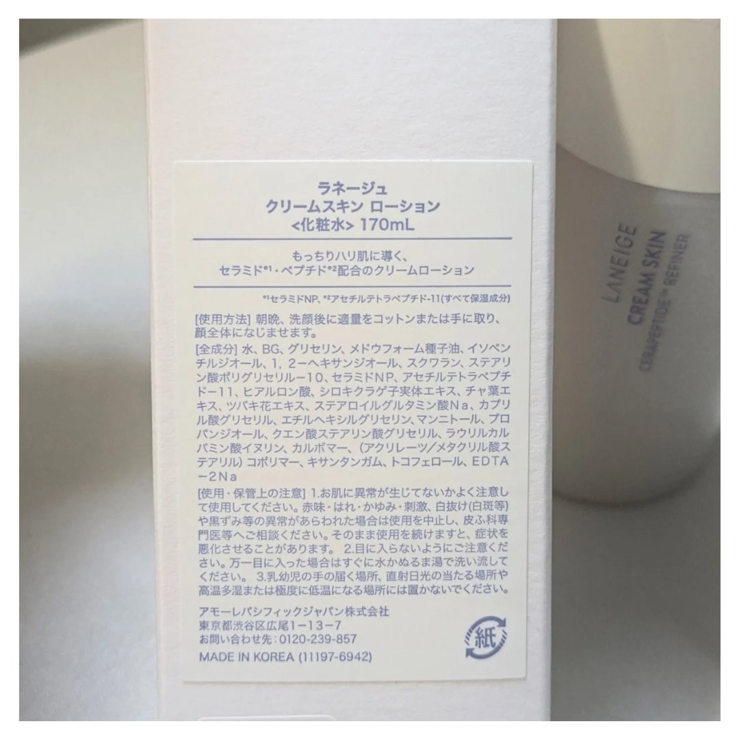 軽いテクスチャーなのにもっちり保湿できるラネージュのクリームスキンローション🧴 ラネージュ独自の整肌成分セラペプチドを含むクリームを細かくブレンドしてトナーにしている ベタつかない滑らかなしっとり肌は忘れられない🥺