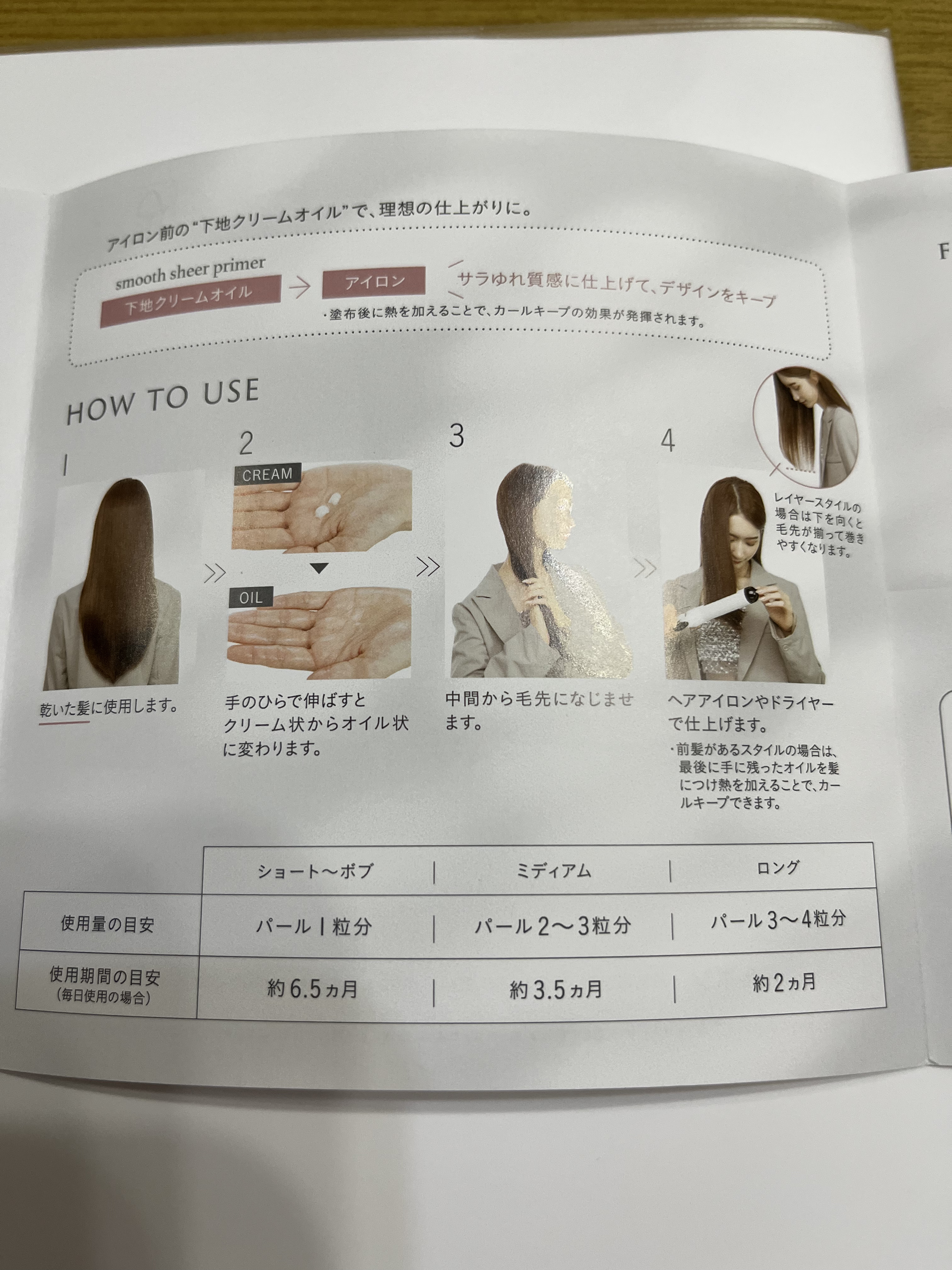 - ※美容室サロン専売品 髪1本1本がサラサラゆれるレイヤースタイルを叶え、カールキープを実現する、アイロン前に使用するクリーム剤型の下地オイルです。