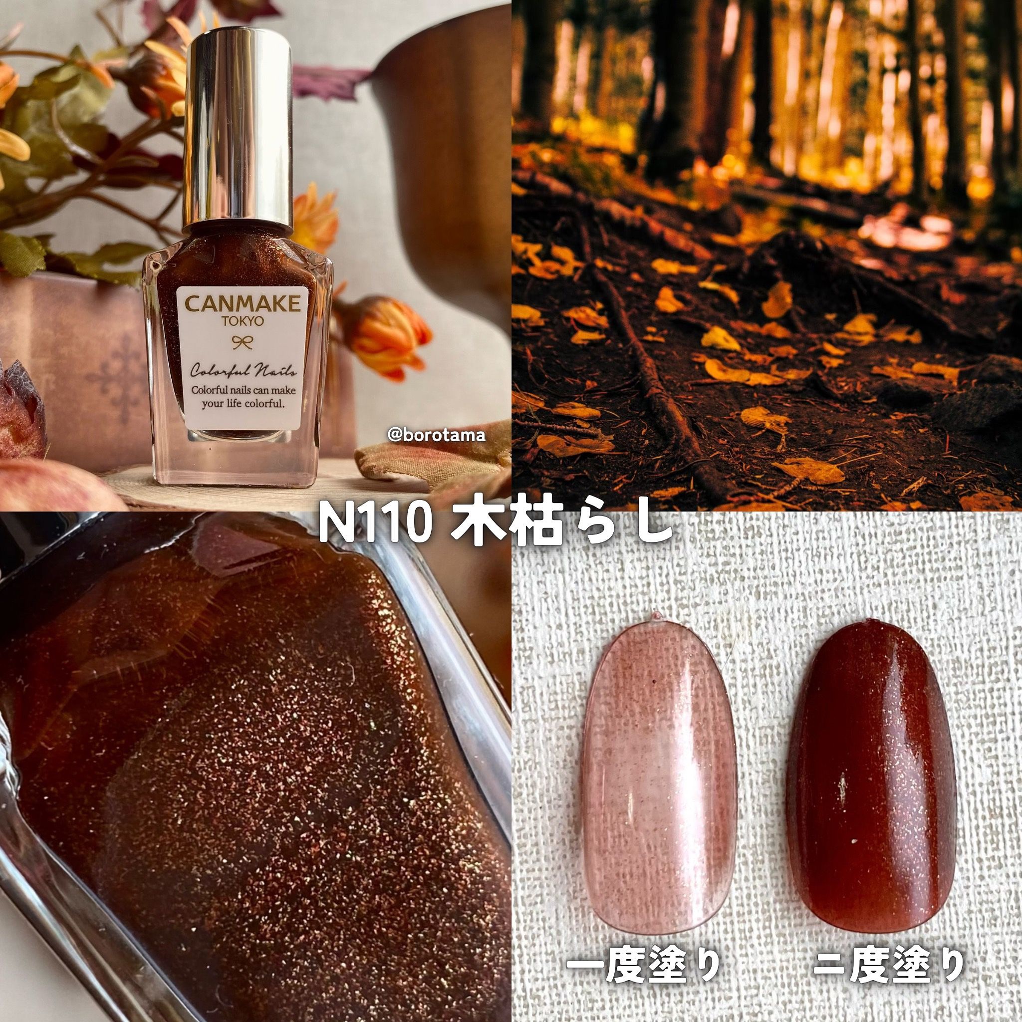 キャンメイク新色💅❤️秋の紅葉カラー🍁✧ー✧ー✧ー✧ー✧ー✧ー✧ー✧ー✧ー✧N107葉洩れ日ゴールドパールが輝くメタリックグリーンN108イチョウ並木コッパーラメがちらちら輝くメタリックイエローN109紅葉狩り赤ラメがちらちら輝くレッドN11...