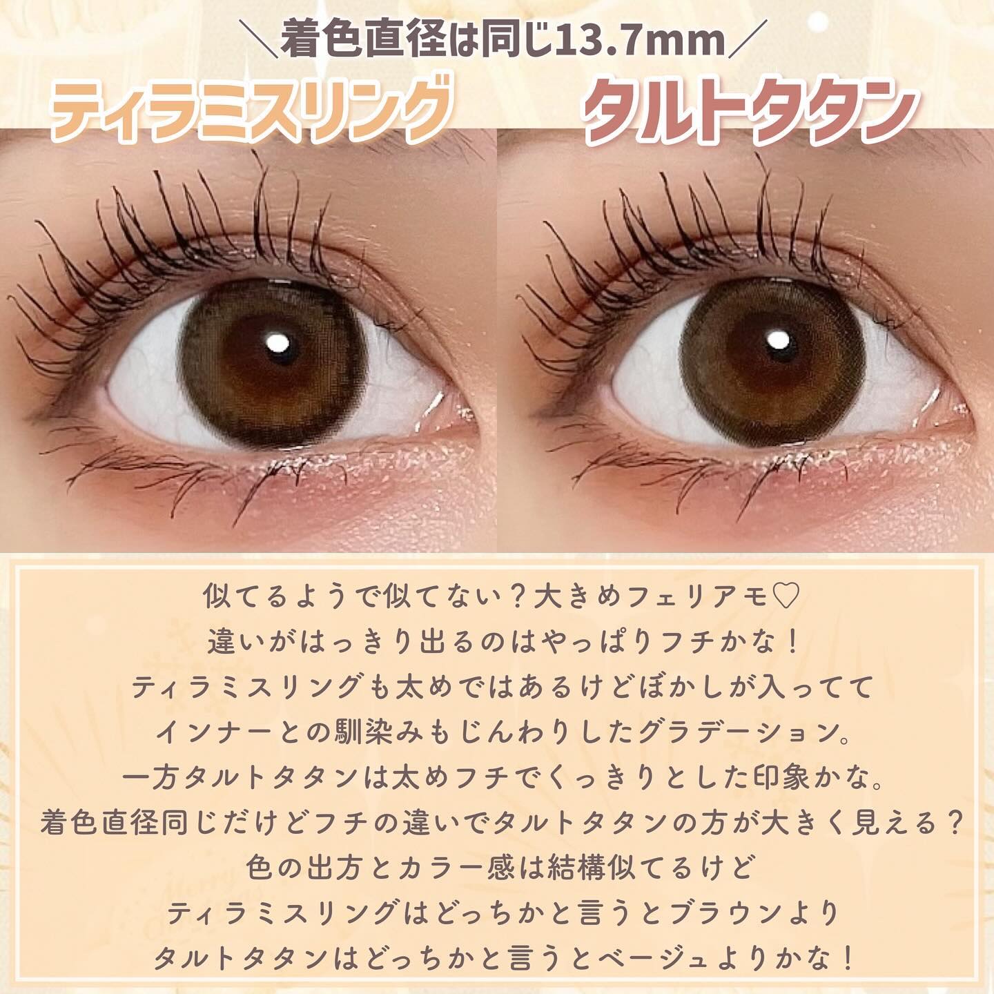 人気3カラーのマンスリータイプが出たよ〜!! ウーロンティーがめっちゃ好き!!大人も使いやすいサイズ感で、生まれつき色素薄めに見えるカラー👀✨ タルトタタンはくりっとした可愛らしい大きめの瞳を演出できる🫶🏻