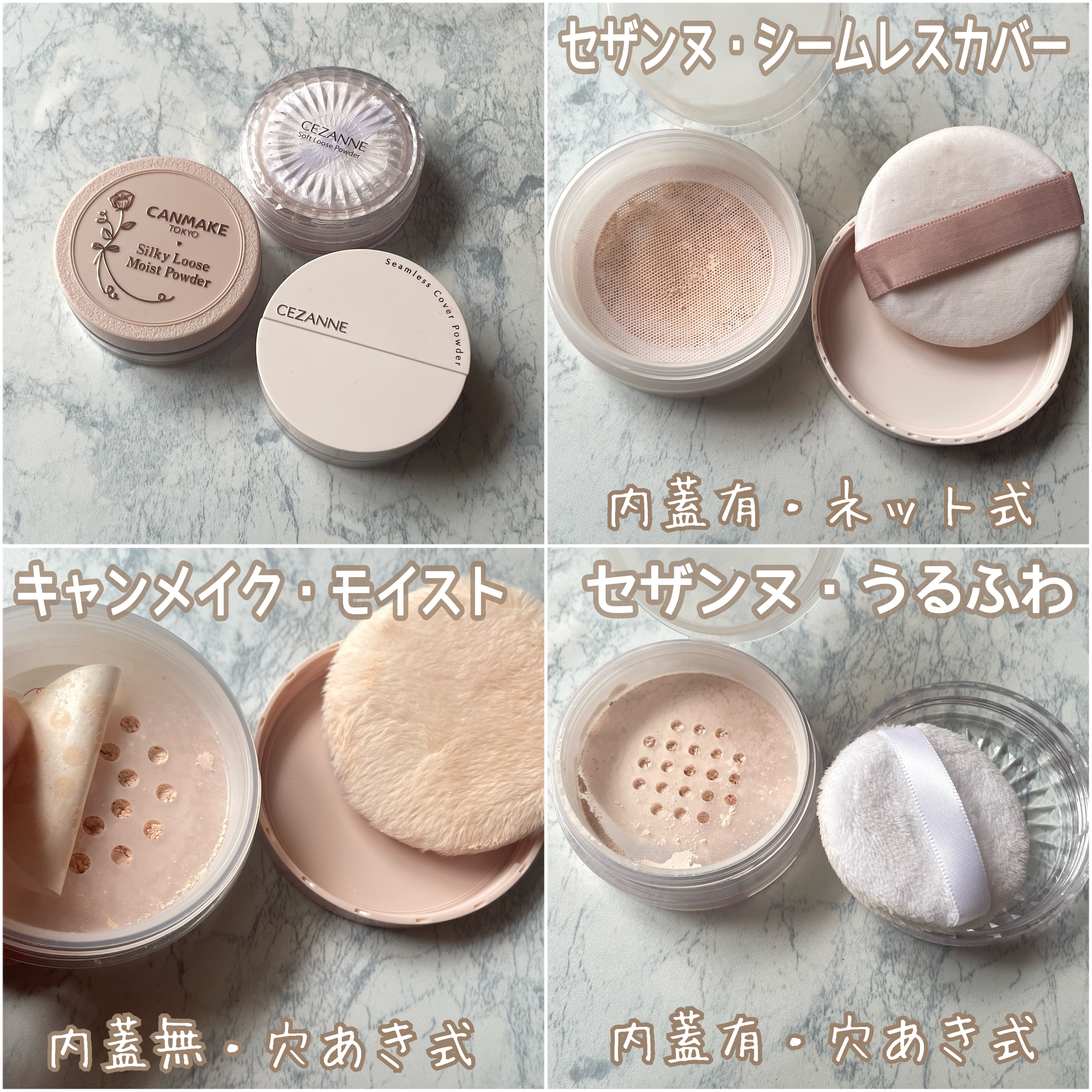 キャンメイクとCEZANNEのパウダー比較💫手持ちのパウダー「キャンメイクシルキールースモイストパウダー01」と「CEZANNEシームレスカバーパウダー02」を比較していきます!!※どちらも付属パフで付けています。キャンメイク→付属パフは毛が...