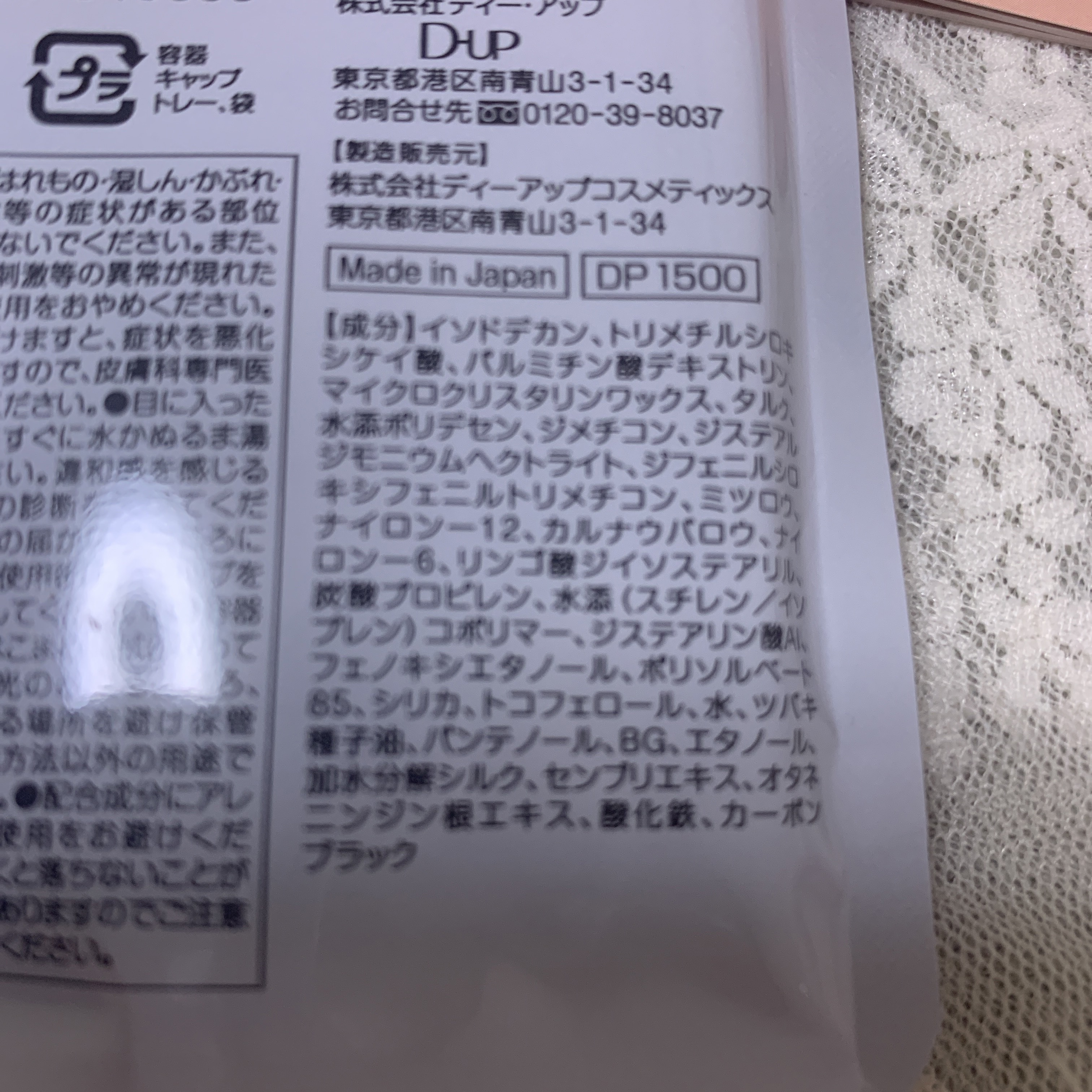 - <ブラック> イソドデカン、トリメチルシロキシケイ酸、パルミチン酸デキストリン、マイクロクリスタリンワックス、タルク、水添ポリデセン、ジメチコン、ジステアルジモニウムヘクトライト、ジフェニルシロキシフェニルトリメチコン、ミツロウ、ナイロンー12、カルナウバロウ、ナイロンー6、リンゴ酸ジイソステアリル、炭酸プロピレン、水添(スチレン/イソプレン)コポリマー、ジステアリン酸Al、フェノキシエタノール、ポリソルベート85、シリカ、トコフェロール、水、ツバキ種子油、パンテノール、BG、エタノール、加水分解シルク、センブリエキス、オタネニンジン根エキス、酸化鉄、カーボンブラック