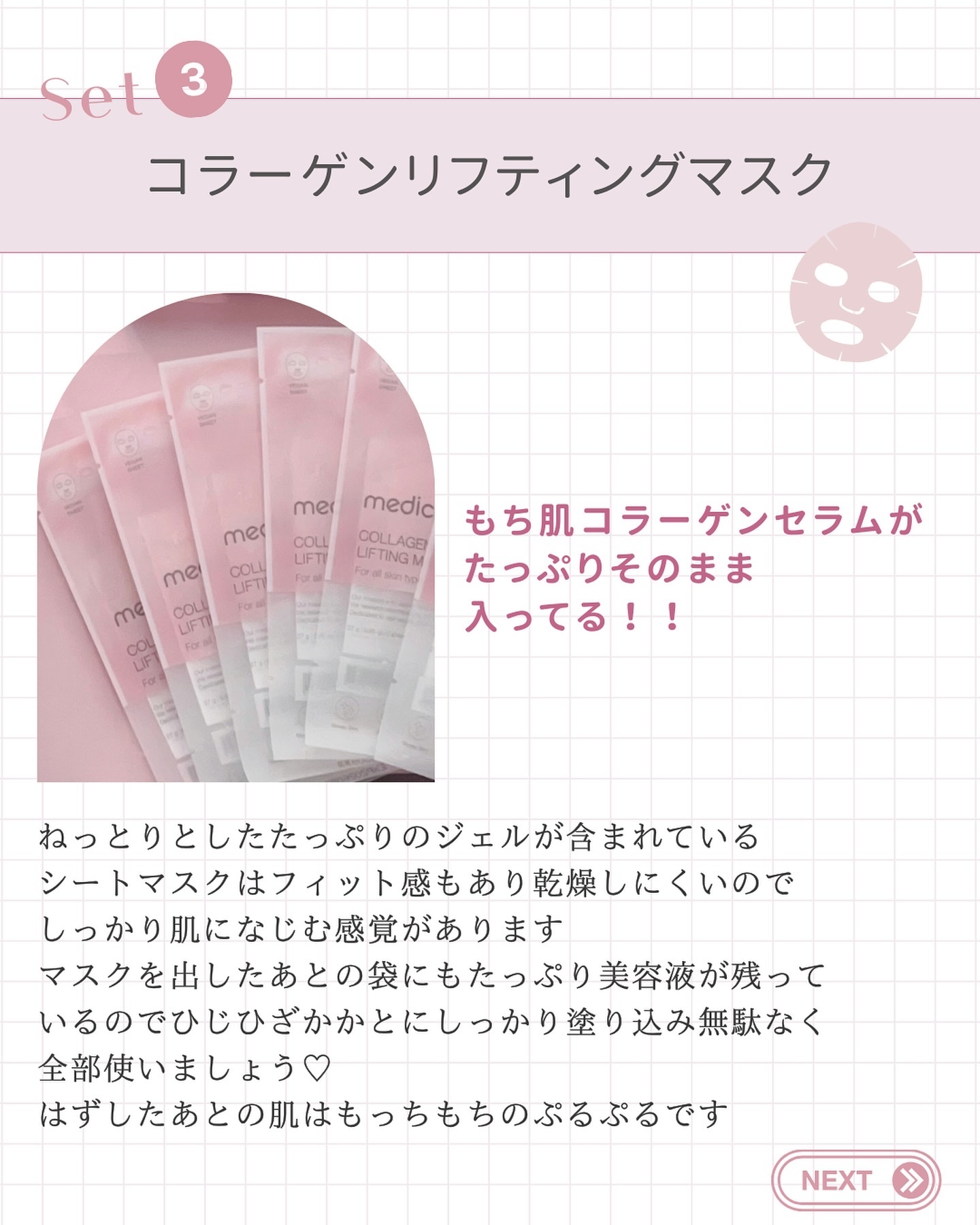 MEDICUBE もち肌コラーゲンリフティングマスク | 500円 |
