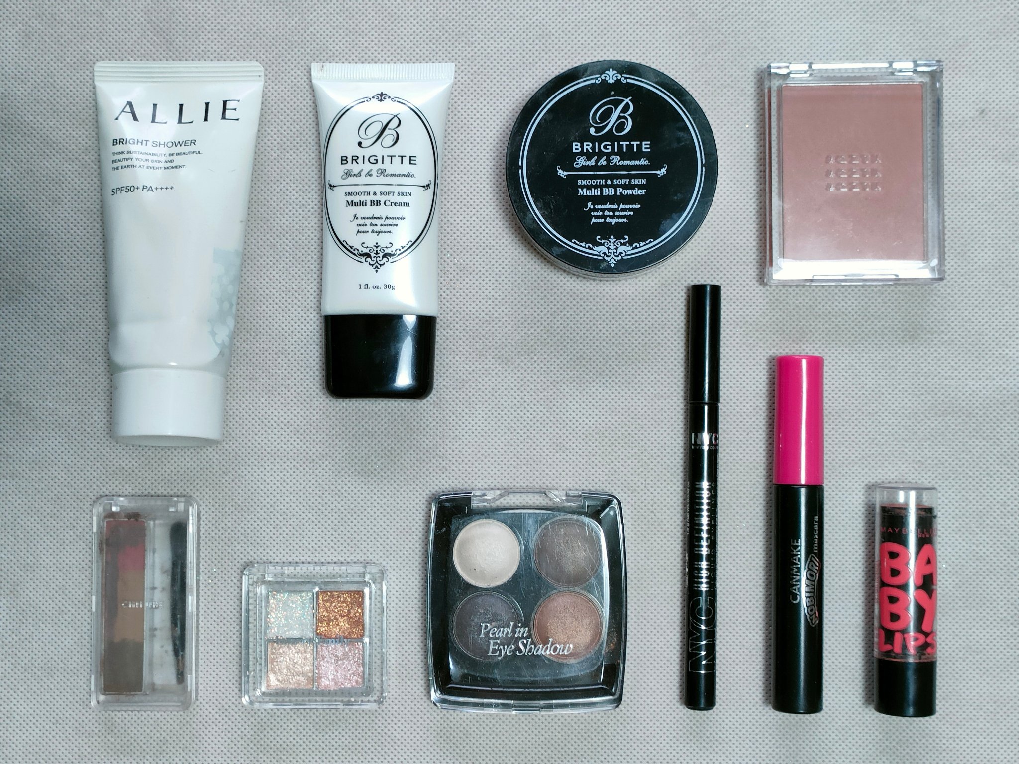 アリィー ニュアンスチェンジUV ジェル RSを、顔全体にまんべんなく塗ります。 RMK RMK ジェルクリーミィファンデーション 103を、顔全体にまんべんなく塗ります。 ジョンソンベビー ジョンソン ベビーパウダーを、顔全体にまんべんなく軽くはたきます。 THE BODY SHOP bronze shade warm glowを、両頬に塗ります。 KATE リフレクトミラーアイズ BR-1の締め色を、眉毛全体にまんべんなく塗ります。 URGLAM UR GLAMBLOOMING EYE COLOR PALETTE 01を、使用しました。 ちふれ リキッド アイライナー 筆ペンタイプ BK30 ブラックを、塗ります。 CEZANNE エアリーカールマスカラを、まつ毛全体にまんべんなく塗ります。 MAYBELLINE NEW YORK コロッサルボリュームエクスプレスを、まつ毛全体にまんべんなく塗ります。 MAYBELLINE NEW YORK SPステイ マットインク 135を、唇全体にまんべんなく塗ります。