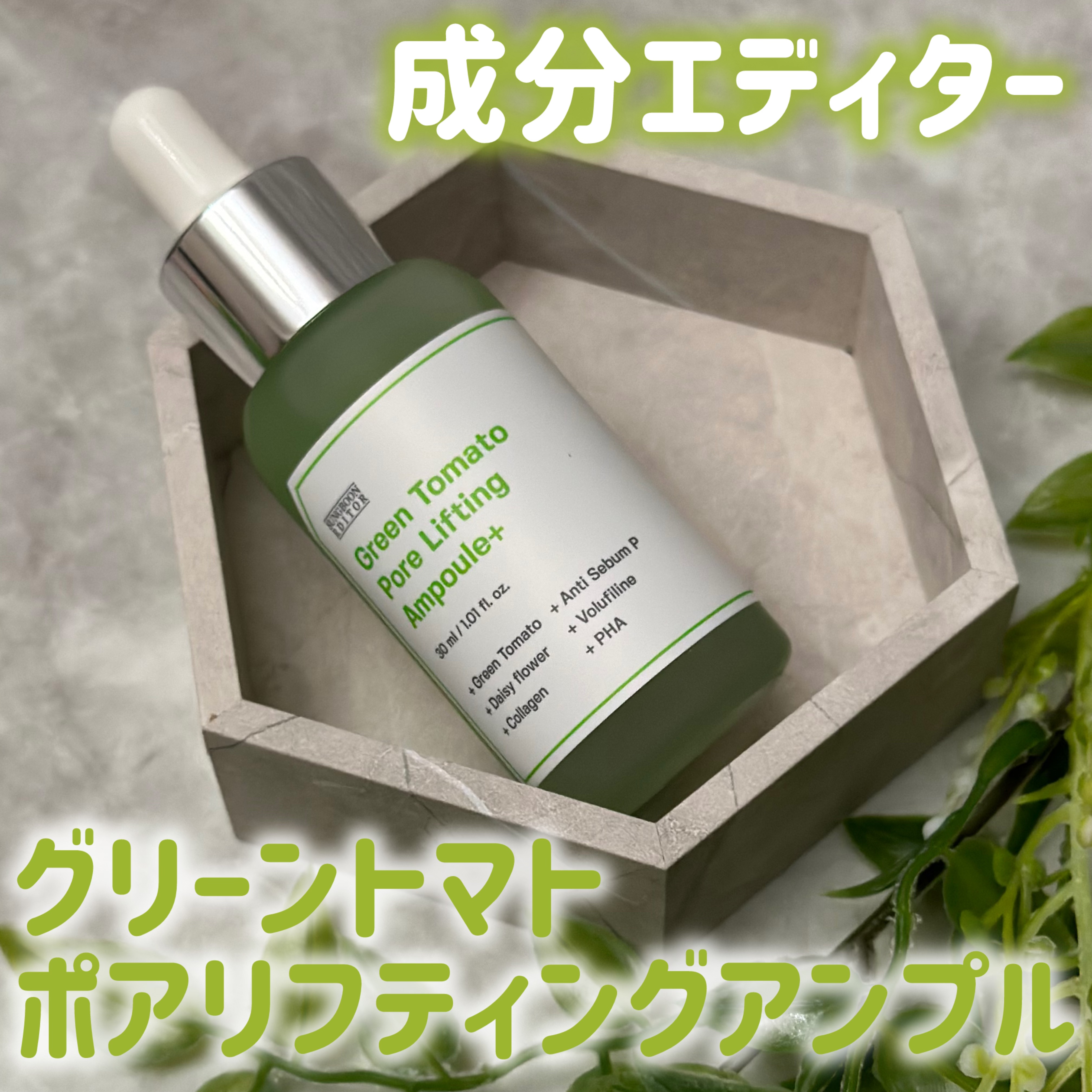 成分エディターグリーントマトポアリフティングアンプル縦毛穴、横毛穴、メラニン毛穴の気になる3種の毛穴にアプローチ!毛穴が気になっている方におすすめなアンプル😊低刺激テスト済みで朝も夜も使用可能!とろみがあるテクスチャーのアンプルを満べんなく塗...