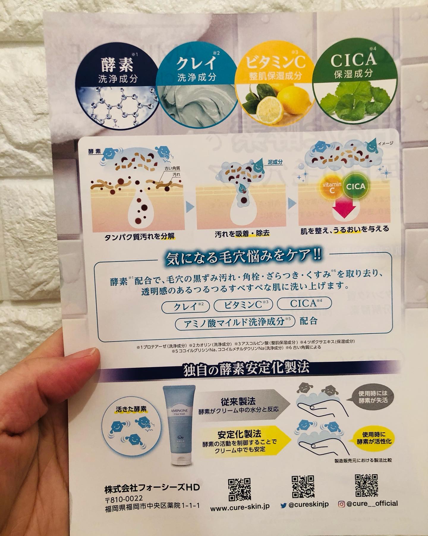 - 活きたまま※1の酵素※2配合+アミノ酸系マイルド洗浄成分※3で毎日の毛穴ケアにお勧めの洗顔料です。ビタミンC※4 やCICA※5を配合することによりうるおいを守りながら、タンパク質分解酵素とクレイ※6が毛穴の黒ずみ汚れ・角栓・ざらつき・くすみ※7を取り去り、透明感のあるつるつるすべすべな肌に洗い上げます。 独自の酵素安定化製法。 ※1使用時に活性化する状態※2プロテアーゼ:洗浄成分 ※3ココイルグリシンNa、ココイルメチルタウリンNa:洗浄成分 ※4アスコルビン酸:整肌保湿成分 ※5ツボクサエキス:保湿成分 ※6カオリン:洗浄成分 ※7古い角質による
