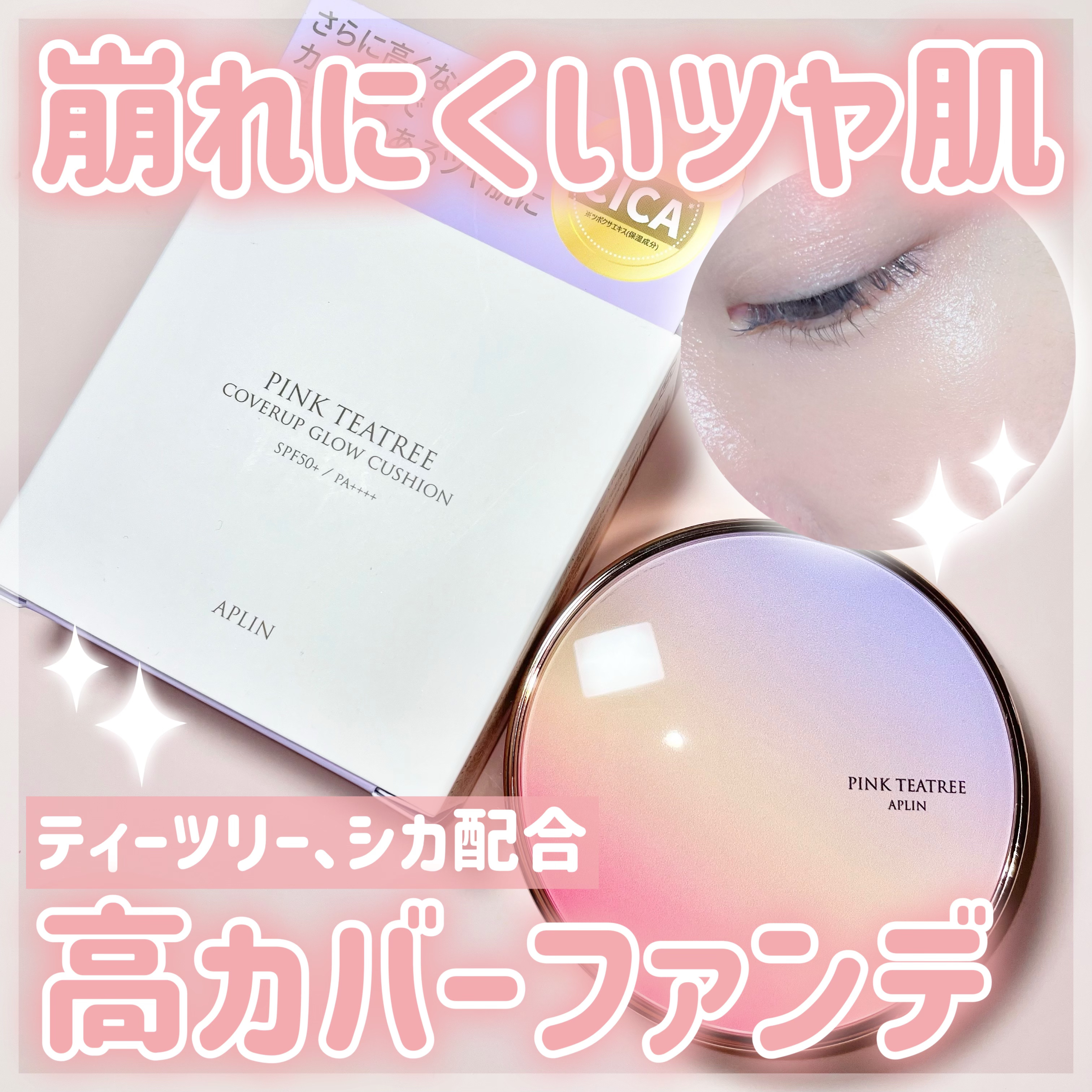APLIN ピンクティーツリーカバークッション 21号ライトベージュ 2,490円(税込) 少量でよく伸びてハイカバー! 赤みやくすみをしっかりカバ一できるのに、厚塗り感のないなめらかな仕上がり♡ ハイカバーなのにナチュラルなツヤ感とサラッとしつつ、乾燥崩れしにくい仕上がりに感動します!!