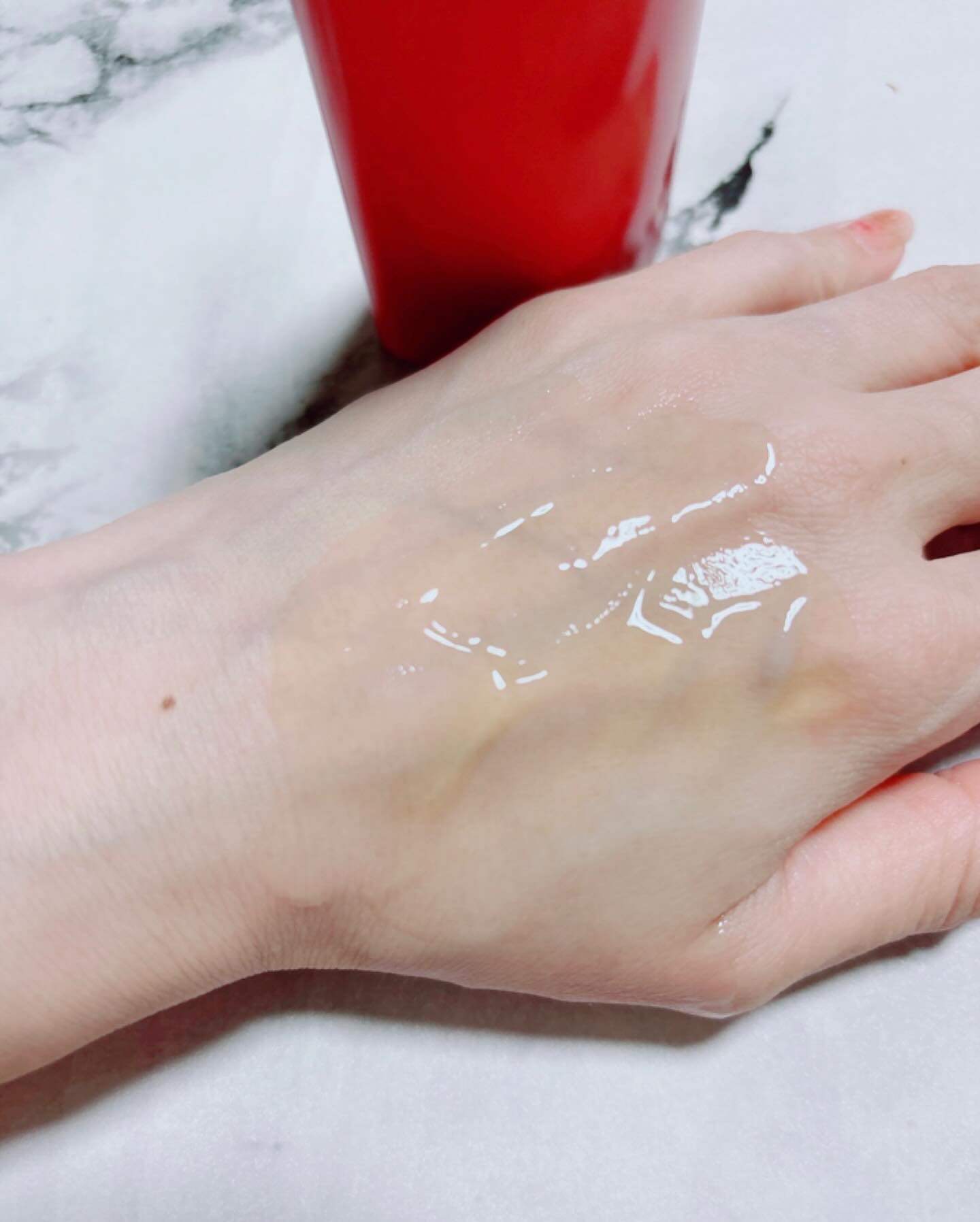 ファンデをしない日でも心地よく絶品肌をかなえるベースメイクです😆 乳液×日やけ止め×ライトメイク効果があって、自然なカバー効果で毛穴レスな肌が持続します。 自然なベージュカラーで、滑らかな伸びのいいテクスチャーです。しかも付け心地も軽くて優しい付け心地。溶け込むように肌に馴染んでしっとり&艶肌に✨ しかもSPF50+/ PA++++で、強力な紫外線から肌を守り、日やけによるシミ・ソバカスを防いでくれる💮 マスクにも付きにくく、化粧持ちも良くて、わたしは肌の赤みや色ムラが気になるのですが、きれいにカバーされます😃